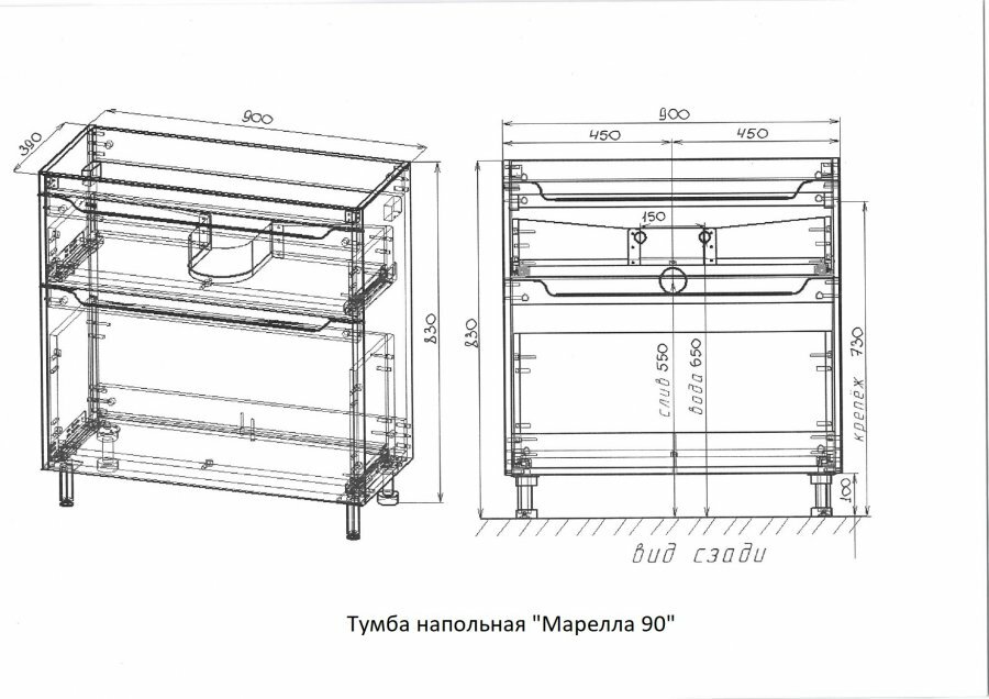 - Размеры корпуса тумбы (ШхВхГ): 900х830х390 мм.
