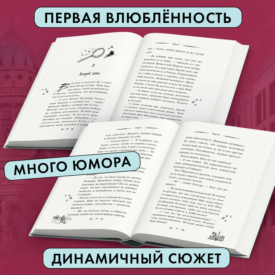 Новинка от автора серии-бестселлера "Приключения кота-детектива" Фрауке Шойнеманн. Трилогия о гитаристке популярной группы, которая становится спецагентом и раскрывает дела вместе с ироничным мышонком! Застенчивая и слегка сумасшедшая, Тесса мечтает стать участницей мегаизвестной музыкальной группы в ее школе. И происходит немыслимое: она попадает в эту группу! Однако Тесса представляла все это немного иначе. Ночные погони и опасные встречи срывают репетиции перед первым выступлением. А у новых коллег Тессы, похоже, тоже есть совершенно другие увлечения, помимо музыки. Или как еще можно объяснить наличие оружия в приборном футляре? Яркое оформление: трендовая обложка,цветные форзацы, черно-белые виньетки внутри. Отличный подарок дочке, сестре и той, кто любит истории с загадками, юмором и первой влюбленностью! Крутой шпионский роман для детей от 11 лет.