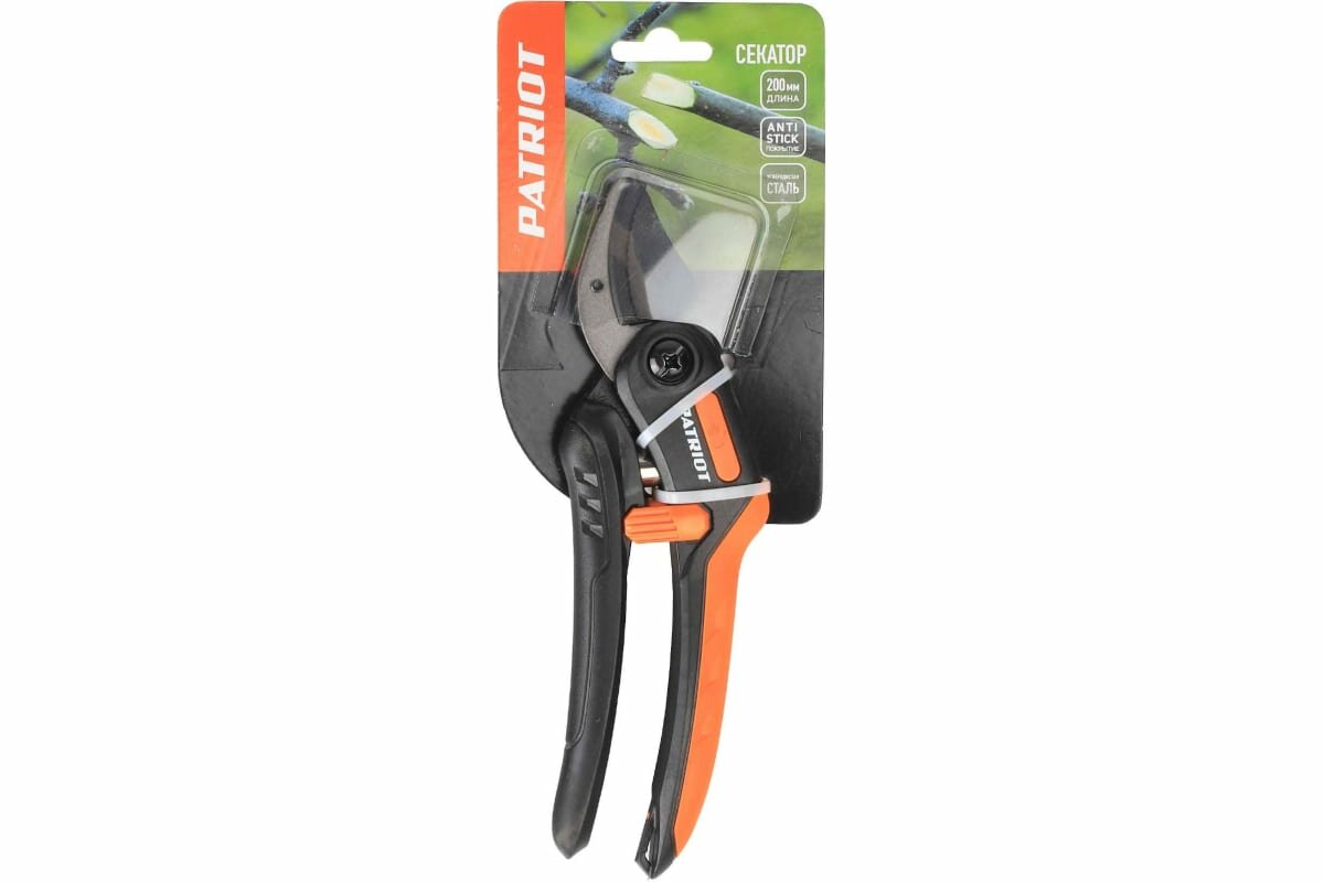 Лезвия секатора с наковаленкой PATRIOT PAP-200 имеют покрытие TEFLON.Верхнее лезвие выполнено из прочной стали SK5 с защитой от налипания Аnti-stick. Остро заточенное лезвие позволяет осуществлять ровный, точный и чистый рез. Также лезвие отличается прочностью и устойчивостью к образованию коррозии, остается острым длительное время.Нижнее лезвие-мачете выполнено из прочной стали 65 MN.Для надежного хвата и комфортной работы эргономичная конструкция рукояток имеет внешнее мягкое TPR покрытие, благодаря которому снижается скольжение во время резания веток.Ручки из прочного и надежного РР обеспечивают легкость инструмента.Для безопасности в закрытом положении при хранении и транспортировке предусмотрена надёжная и простая блокировка лезвий одной рукой с помощью фиксатора.Контактный секатор имеет длину 200 мм.