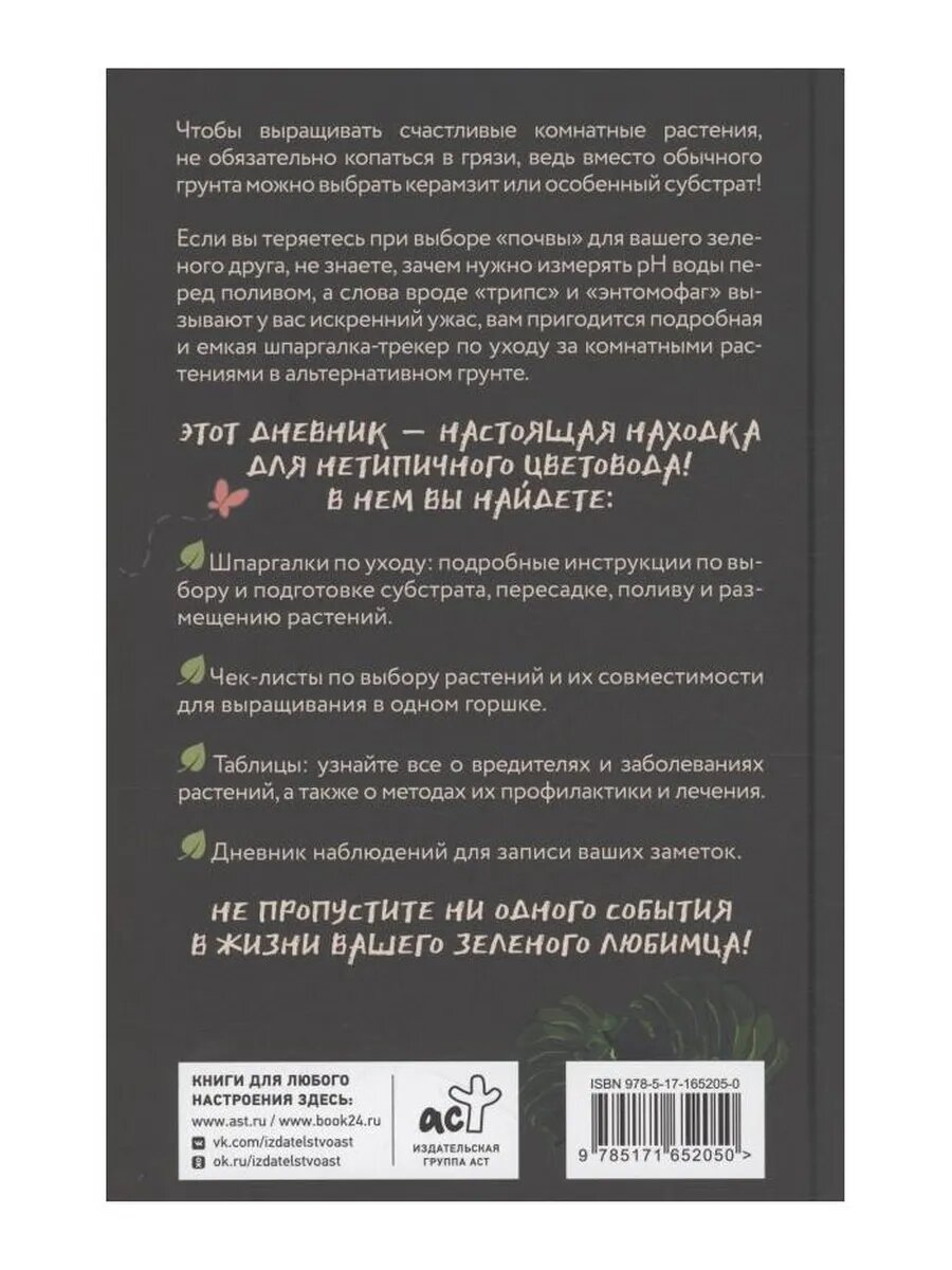 Сервис сравнения цен СкидкаГИД предлагает сравнить цены на товар «Книга: Нетипичный цветовод. Шпаргалка-трекер ухода за комнатными растениями в альтернативном грунте (Анна Петровская); Издательство АСТ, 2024»