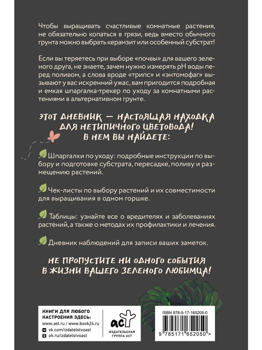 Нетипичный цветовод. Шпаргалка-трекер ухода за комнатными растениями в альтернативном грунте (Анна Петровская); Издательство АСТ, 2024