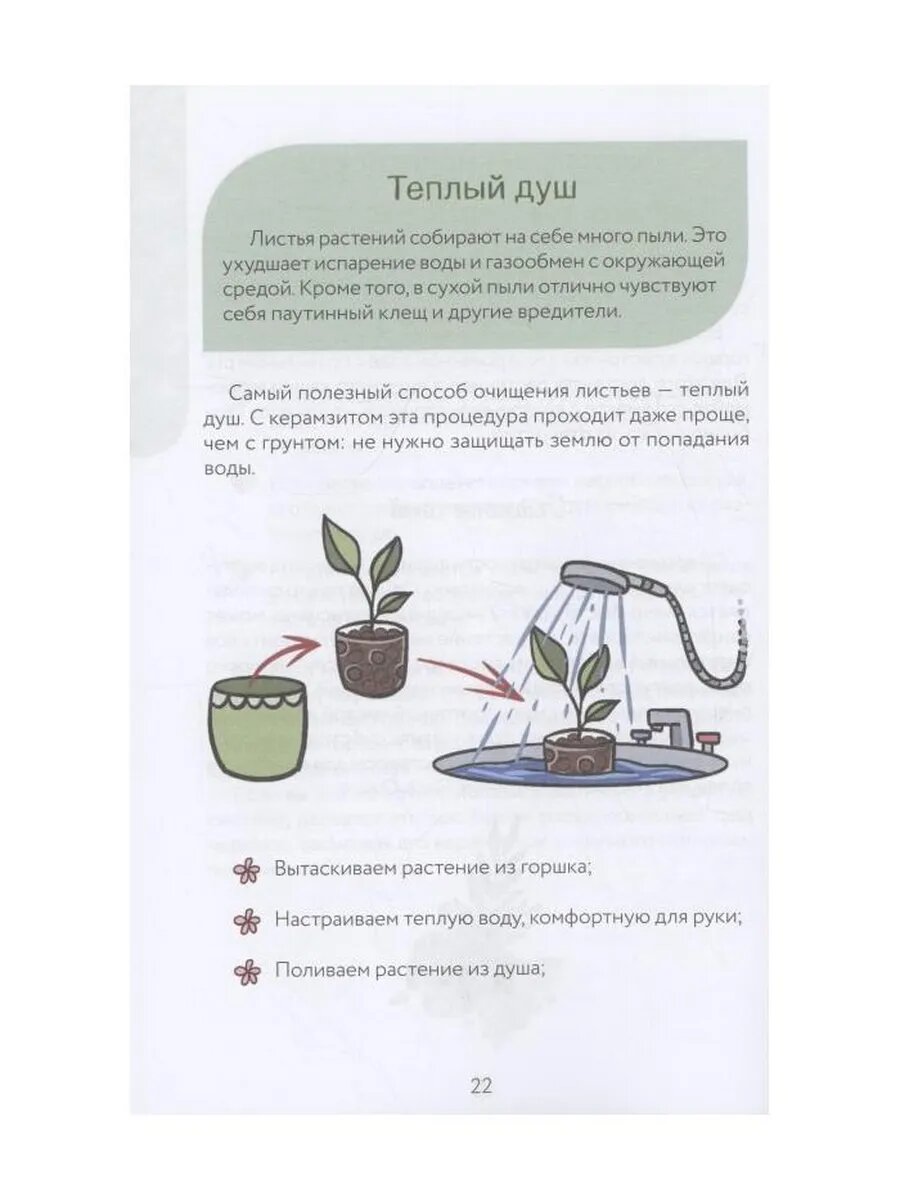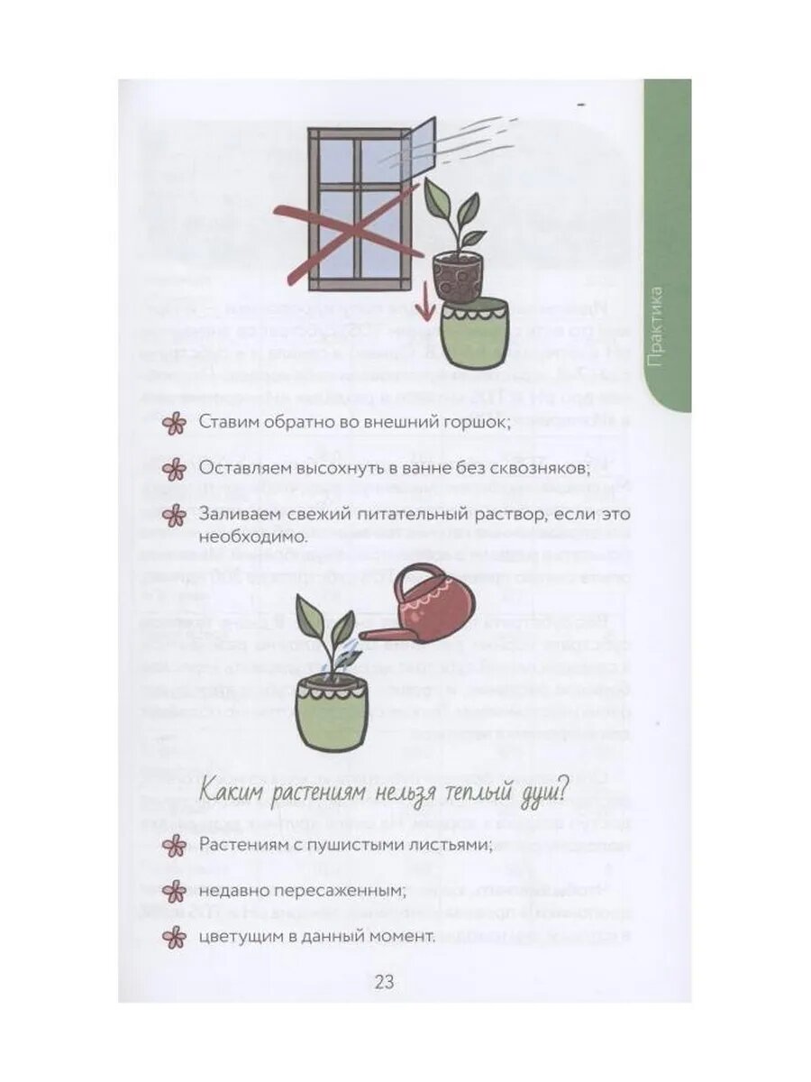 • Шпаргалки по уходу: подробные инструкции по выбору и подготовке субстрата, пересадке, поливу и размещению растений.