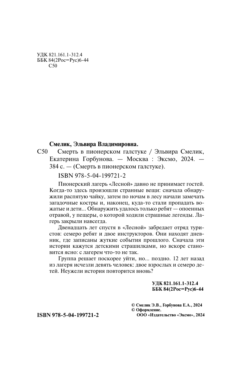 Смерть в пионерском галстуке (Эльвира Владимировна Смелик, Екатерина Горбунова); Эксмо, 2025