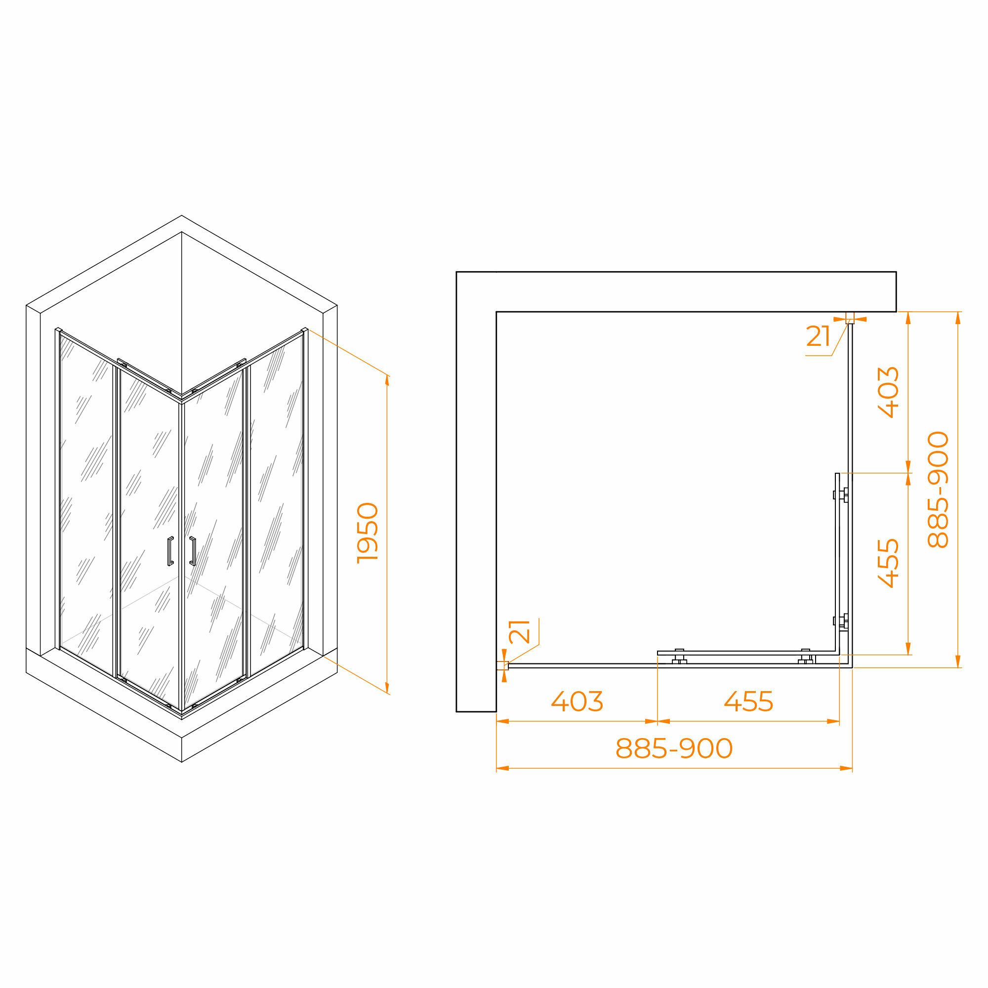 | Размеры с диапазоном регулировок | (985-1000)х(985-1000) |