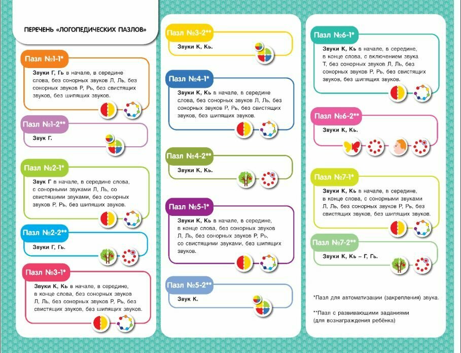 Альбом «Собирай-ка. Звуки раннего онтогенеза Г, Гь, К, Кь. Логопедические пазлы. Игровые задания» является частью комплекта, предназначенного для закрепления (автоматизации) правильного произношения звуков раннего онтогенеза у детей разных возрастных групп.