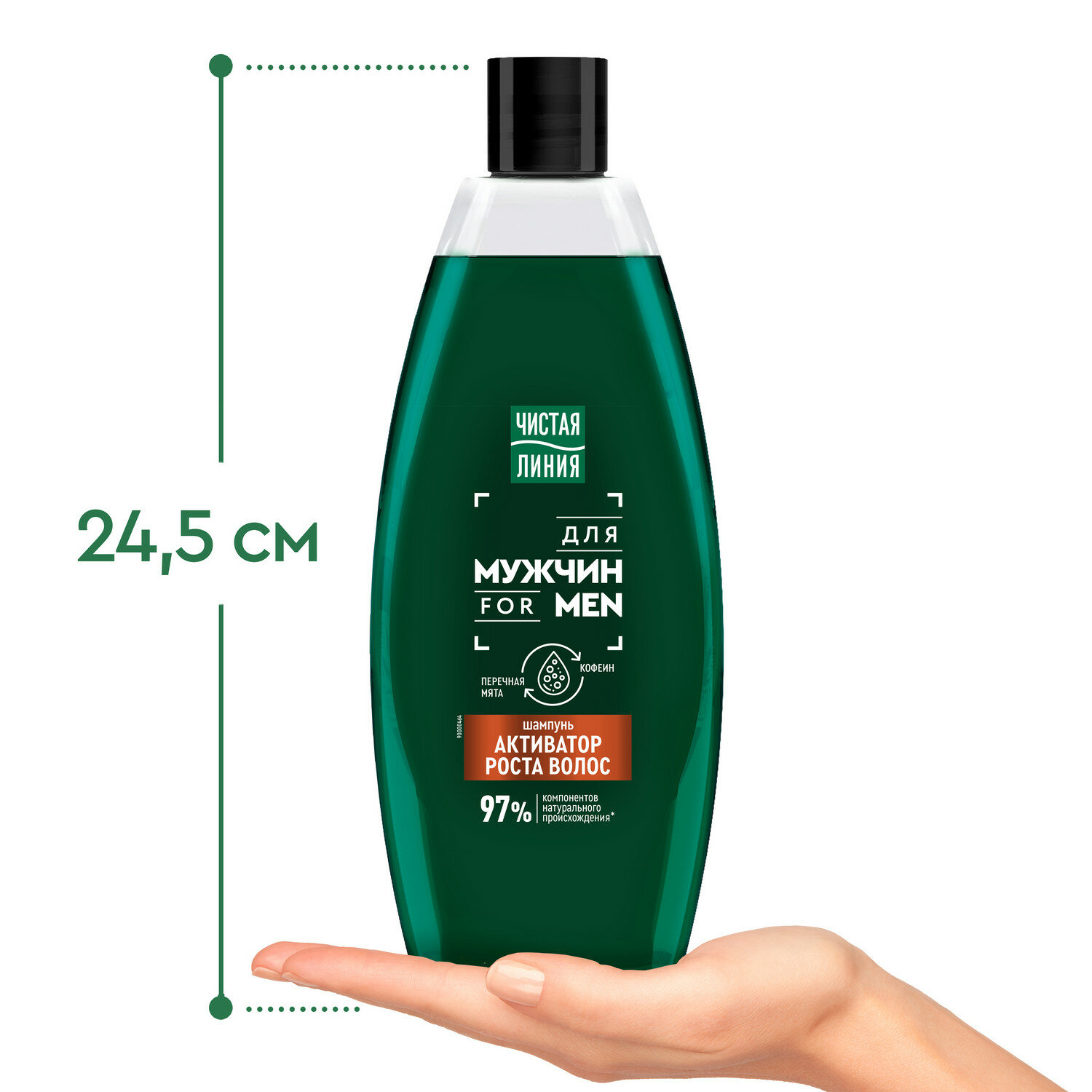 Чистая Линия представляет серию продуктов для мужчин. Шампунь из серии содержит 97% компонентов натурального происхождения, бережно очищает волосы, кожу головы и способствует активации роста волос. Перечная мята и кофеин в составе оказывают комплексное воздействие: питают кожу головы; стимулируют рост волос; делают их сильнее от корней до кончиков.