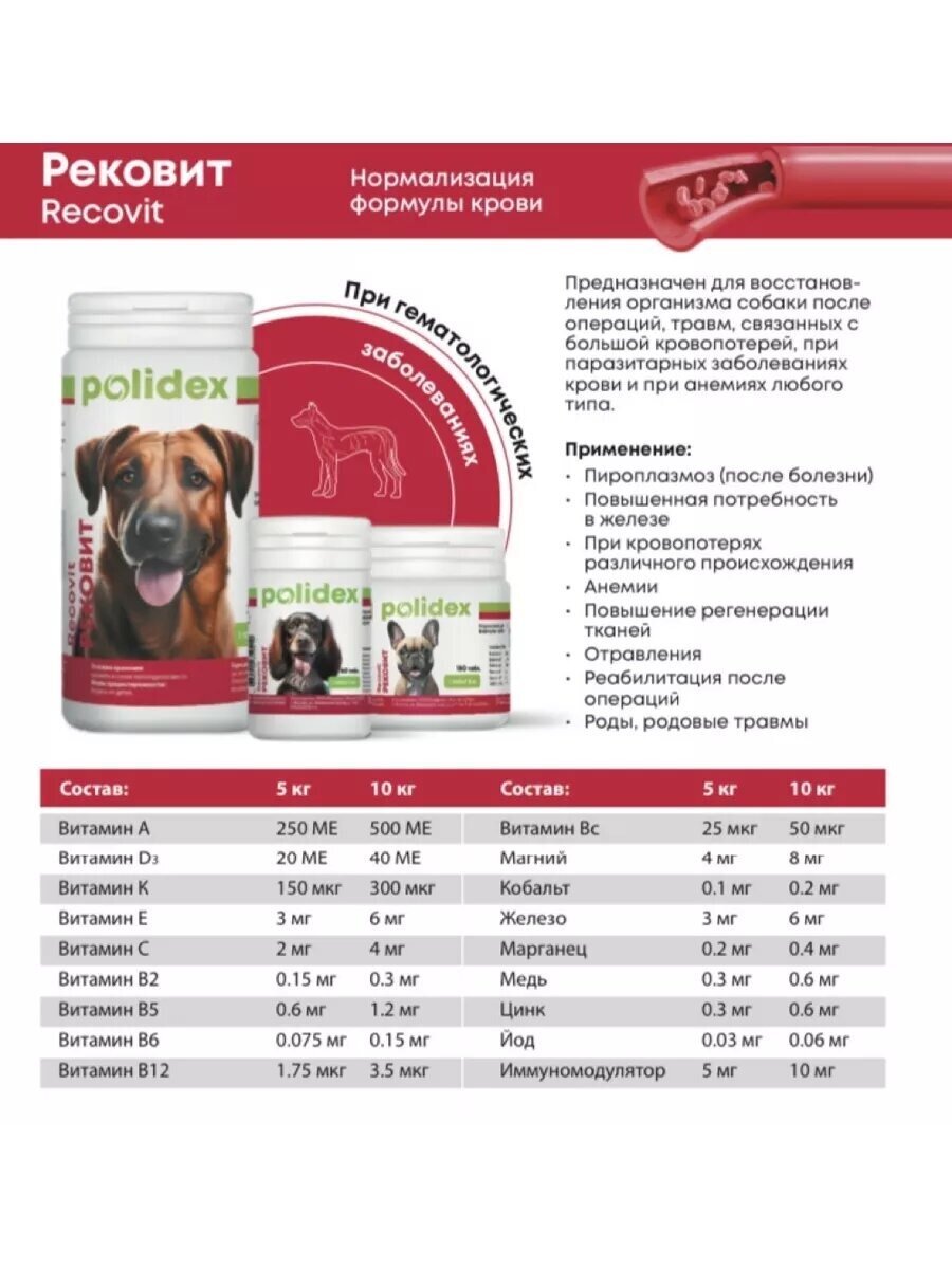 Polidex Рековит Кормовая добавка для нормализации формулы крови собак 60 таблеток