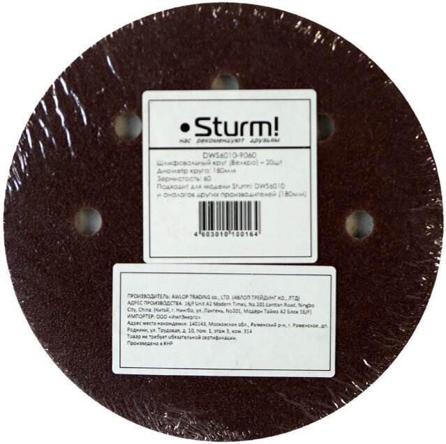 Круг шлифовальный Sturm! DWS6010-9060 P60 180 мм 20 шт DWS6010SL-9060