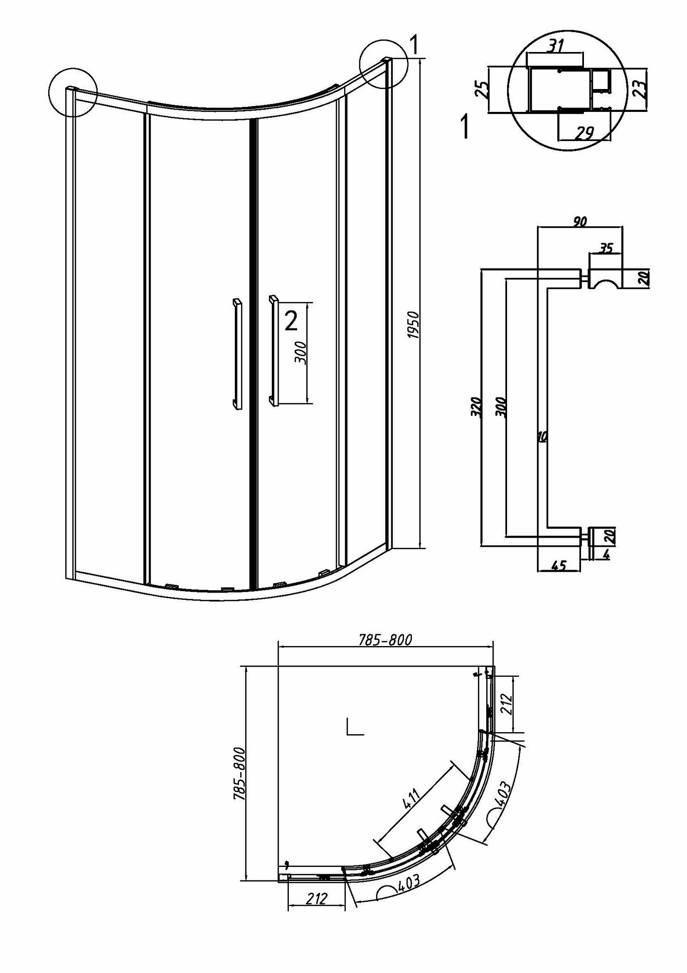 | Форма | Четверть круга |
