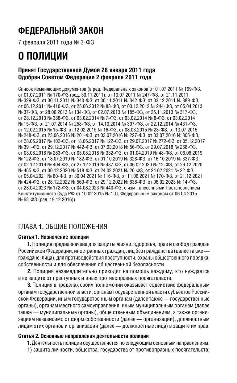 Настоящее издание содержит текст Федерального закона "О полиции" с изменениями и дополнениями на 1 мая 2024. В данной книге приводится вся актуальная информация на дату подписания издания в печать.