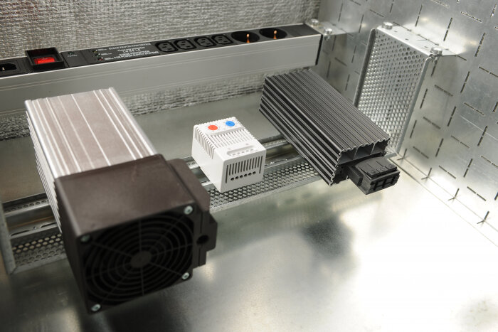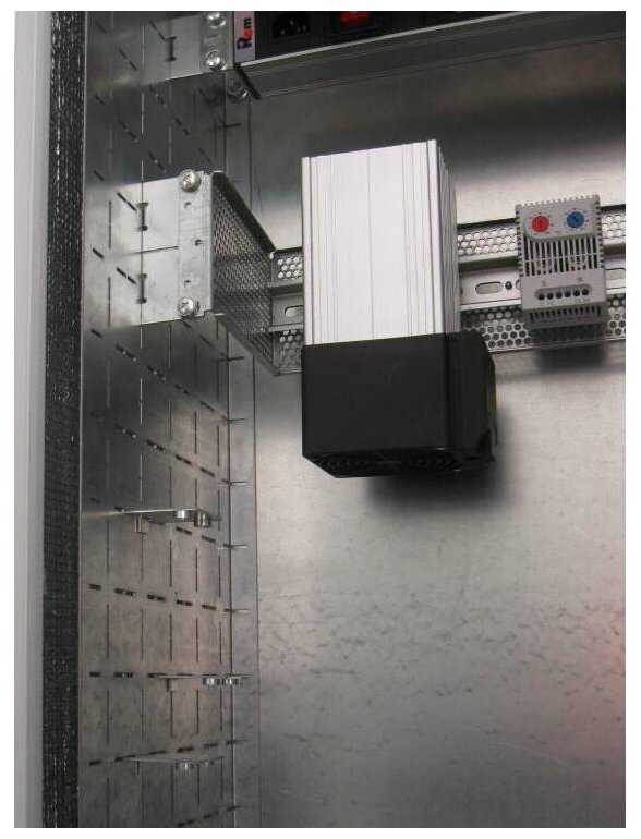 | Особенности | Уровень защиты IP65 (при использовании вентиляции IP54). Металлическая сварная конструкция. Внутри термоизоляционный материал. Дверь шкафа подготовлена для установки вентиляторов моделей МВ-400-2 или МВ-400-2-3, фильтра МВ-Ф. Предустановлена DIN-рейка для установки нагревателей/термореле/гигростата/датчиков. В комплект шкафа входят задняя оцинкованная панель и комплект вертикальных юнитовых панелей 19. Шкаф крепится на стену при помощи 4-х уголков. В основании шкафа предусмотрена съемная заглушка для ввода кабеля. Распределенная нагрузка: 57 кг. Полезная глубина 19 отсека: 420 мм. |