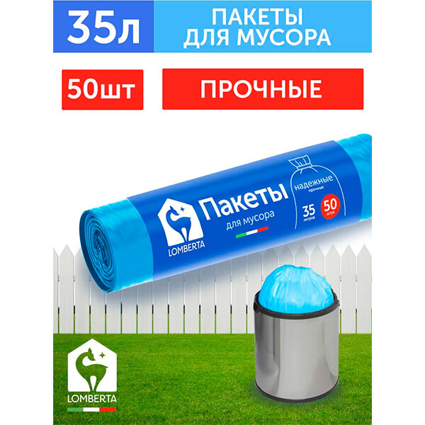 Пакеты для мусора LOMBERTA 50шт 35л Пакет для мусора (голубой) ПНД имеет упаковку, которая может отличаться от фото, ввиду индивидуальных особенностей цветопередачи экрана вашего устройства, а также производитель мог изменить дизайн упаковки. В случае выявления несоответствия сообщите нам об этом.