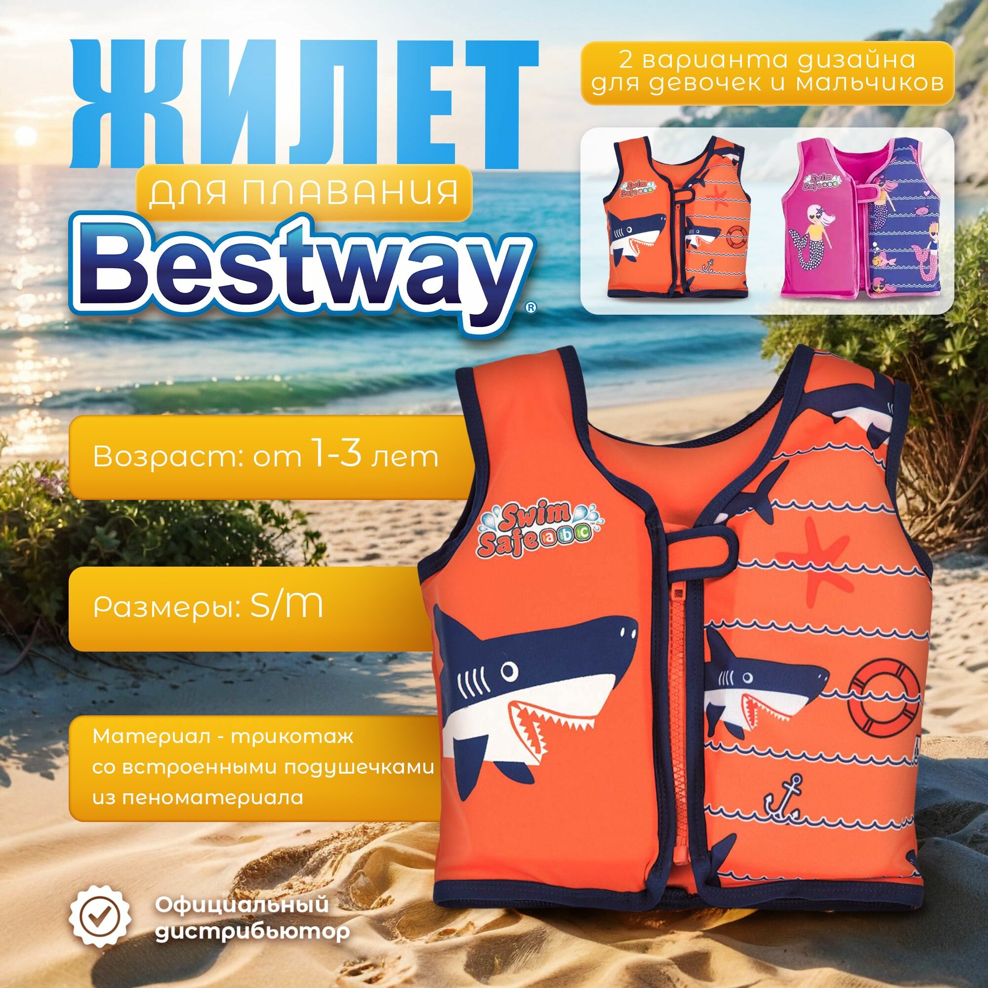 Жилет Bestway для плавания мальчиков/девочек s/m в ассортименте (размер: S-M)
