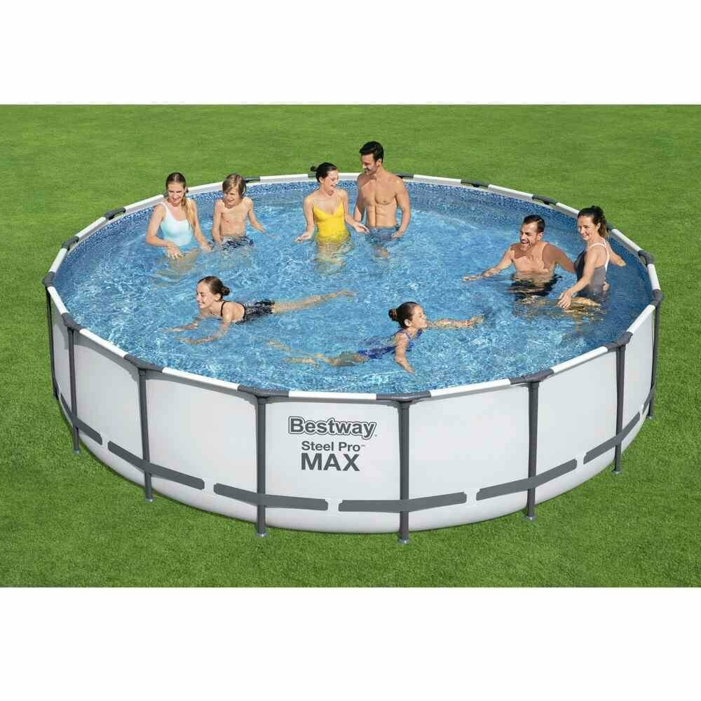 ### Каркасный бассейн Bestway 56462 отличается высокой прочностью и устойчивостью. Чаша выполнена из высококачественного трехслойного ПВХ: два слоя плотного винила и один - полиэстер для особой прочности. Каркас металлический нержавеющий оцинкованный. Не требует бетонирования и подготовки ямы, все, что нужно, это плоская, горизонтальная площадка. Сезонный бассейн (рекомендуется разбирать на холодное время года) обладает простой конструкцией - может быть легко разобран и собран заново. Время сборки и подключения бассейна не более 1-2 часов. Удобный сливной клапан позволяет присоединить садовый шланг, что дает возможность слить воду в любое место. Характеристики: Размер: 549x122см; Объем при 90% заполнении бассейна: 23062л; Возможна простая сборка без инструментов; Чрезвычайно жесткая конструкция рамы с защитой от коррозии для повышения прочности и долговечности; Лента ПВХ обеспечивает дополнительную устойчивость боковых стенок; Встроенный сливной клапан с адаптером для садового шланга.