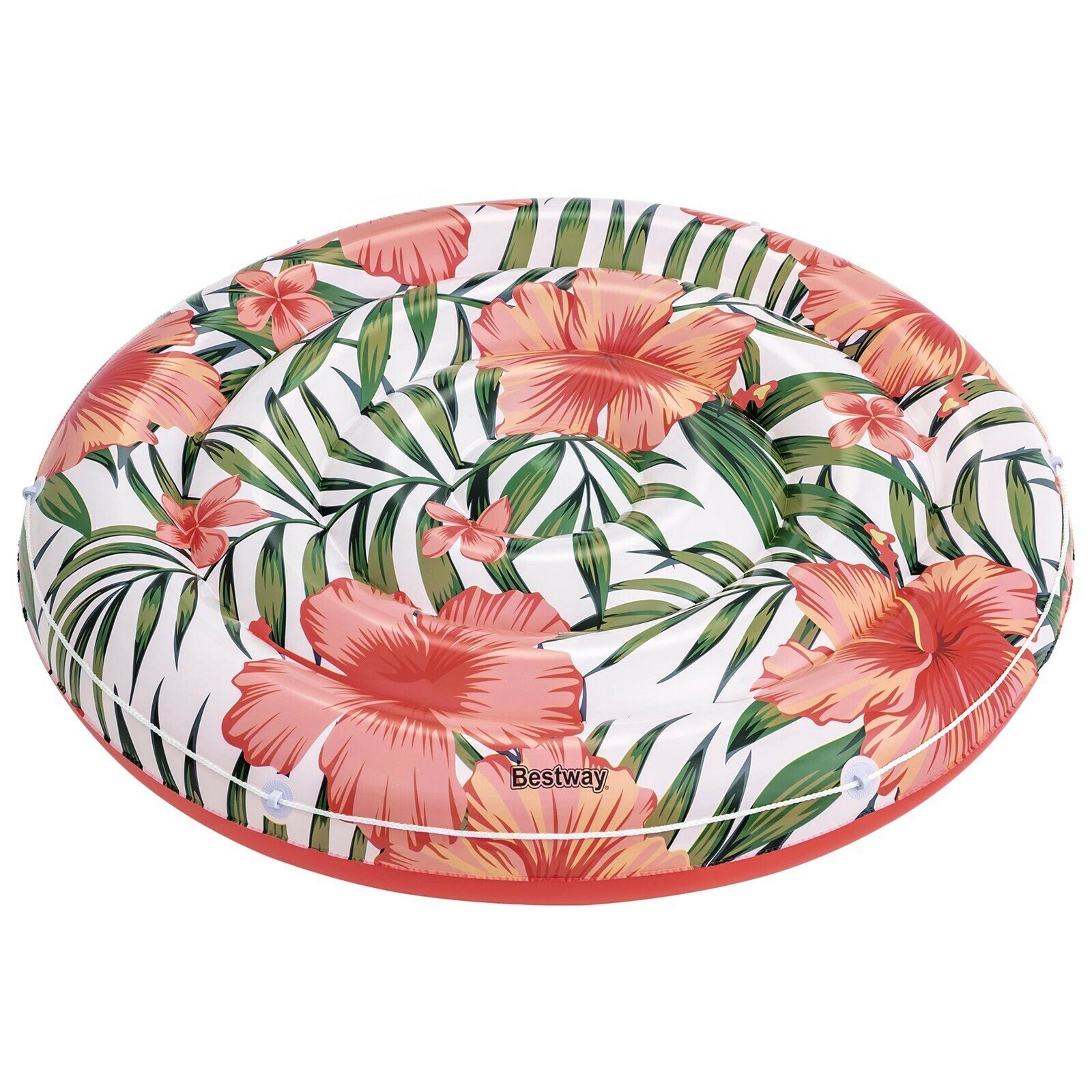 Круглый надувной плот Bestway состоит из двух независимых воздушных камер, с легкостью держит на воде вес до 90 кг и является счастливым обладателем эстетичной белой веревки-канатика для удобной транспортировки. И дети, и взрослые получат вдвое больше позитивных эмоций от отдыха, купаясь, загорая и делая красочные селфи с этим цветастым аксессуаром! Диаметр: 158 см. Материал: ПВХ. Леерный трос со встроенными кольцами по всему периметру. Количество воздушных камер: 2. Рекомендованный возраст: от 12 лет.