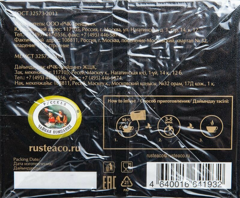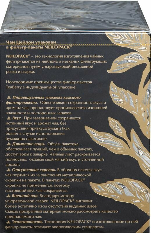 | Состав | Чай черный байховый крупнолистовой цейлонский |