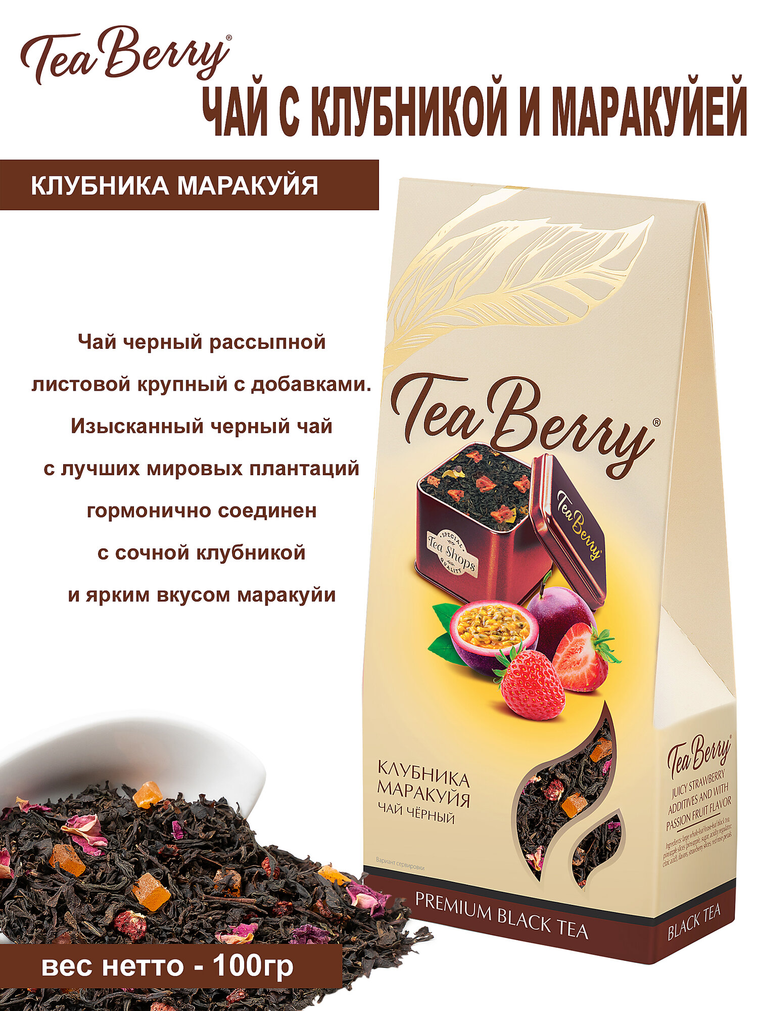 Чай черный TeaBerry Клубника Маракуйя листовой маракуйя клубника 100 г