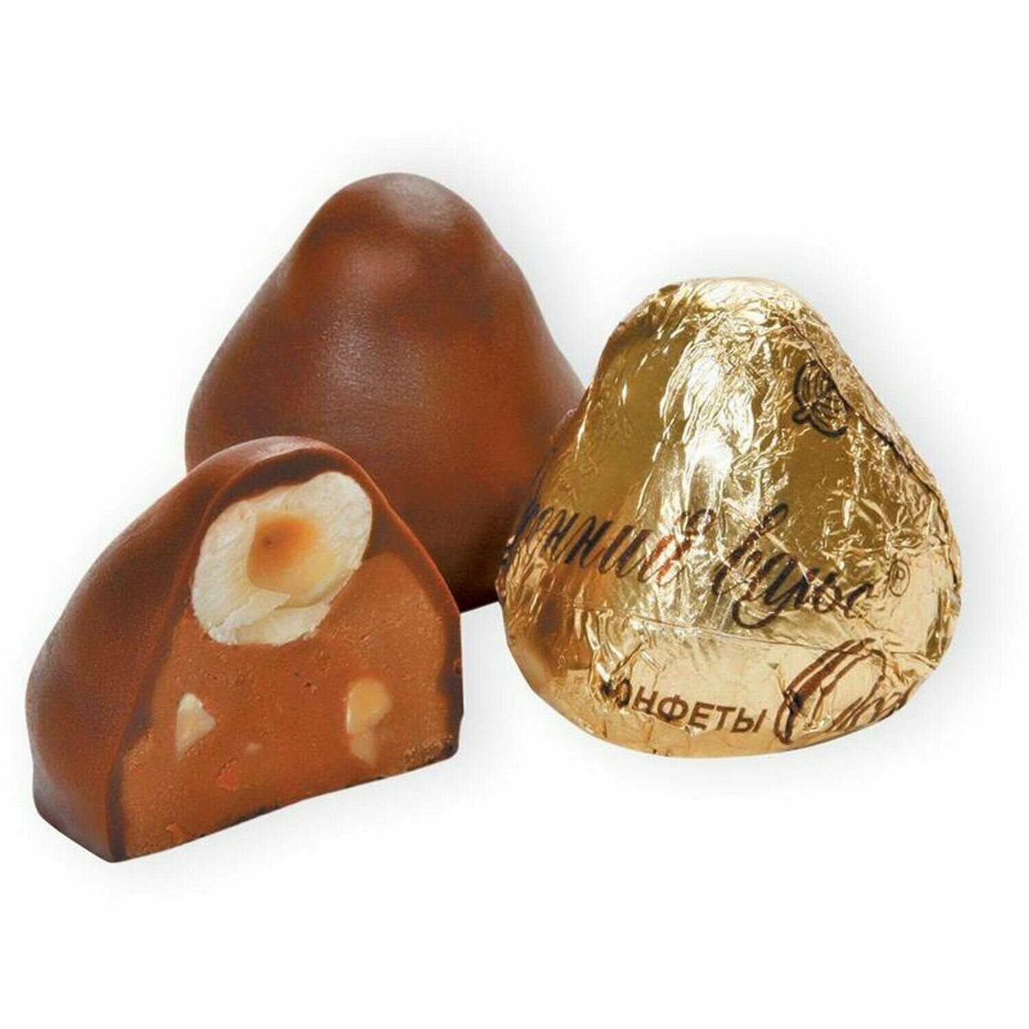"Осенний вальс" - аппетитные конфеты от бренда "Рот Фронт". Они имеют куполообразную форму и гладкую оболочку из шоколадной глазури. Начинка представляет собой нежное пралине с кусочками дробленого арахиса. Верхушка состоит из цельного ядра фундука. Конфеты украсят любое чаепитие и превратят его в маленькое торжество.