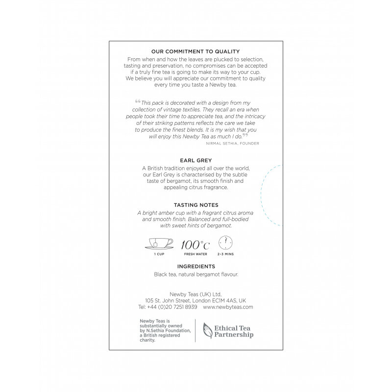 Чай Newby Earl Grey черный с бергамотом 25 пакетиков — великолепный напиток с тонкими цитрусовыми нотками натурального масла бергамота. Для создания, полюбившегося многим купажа, используется только высококачественное сырье. Процесс сборки листьев с лучших мировых плантаций производится в самое благоприятное время чайного сезона. Основательный контроль на всех этапах производства и составление смесей высококлассными профессионалами, позволяют получать изысканный бленд, покоривший множество ценителей бодрящего напитка. Чашка безупречного Newby Earl Grey станет приятным открытием для истинных гурманов. Ярко-янтарный настой черного чая с утонченным вкусом сладкого бергамота, освежающим, цитрусовым ароматом и мягким послевкусием идеален для употребления в течение всего дня. Каждое утро с чаем Эрл Грей будет наполнено пробуждающей силой и радостью, а в течение дня он прекрасно взбодрит, зарядит энергией и повысит концентрацию внимания. Newby Earl Grey прекрасен для угощения гостей и важных партнеров, клиентов и друзей. Такой напиток займет достойную позицию в домашней и офисной коллекции чая. Для приготовления насыщенного и тонизирующего настоя, вскипятите воду и залейте чайный пакетик. Достаточно настоять его 3-5 минут, чтобы получить великолепный, ароматный и невероятно вкусный чай. Чтобы каждое ваше чаепитие было ярким и приятным, чайные пакетики упакованы в многослойный фольгированный конверт, который защищает его от посторонних запахов и излишней влаги. Подарите себе теплые и приятные мгновения с высококачественным чаем компании Newby, обладательницы множества золотых наград Great Taste Awards и Global Tea Championship, предпочтение которой отдают лучшие отели и рестораны. Состав: черный байховый чай, натуральный ароматизатор бергамота. Способ приготовления: заварить чайный пакетик в чашке или заварочном чайнике кипяченой водой и настоять 3-5 минут. Вес: 50 г. Количество пакетиков в упаковке: 25 штук по 2 г. Тип упаковки: картонная коробка. Условия хранения: хранить в чистом, хорошо вентилируемом помещении без посторонних запахов при относительной влажности воздуха не более 70%. Страна производства: Индия.