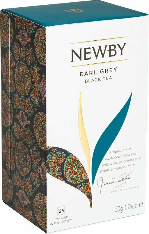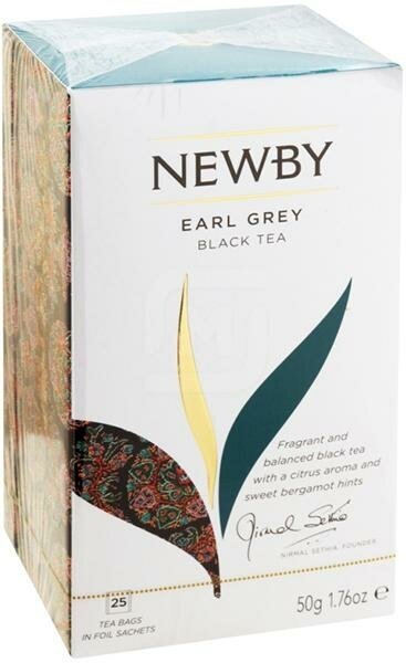 Чай черный Newby Earl grey в пакетиках бергамот эфирные масла 25 пак.