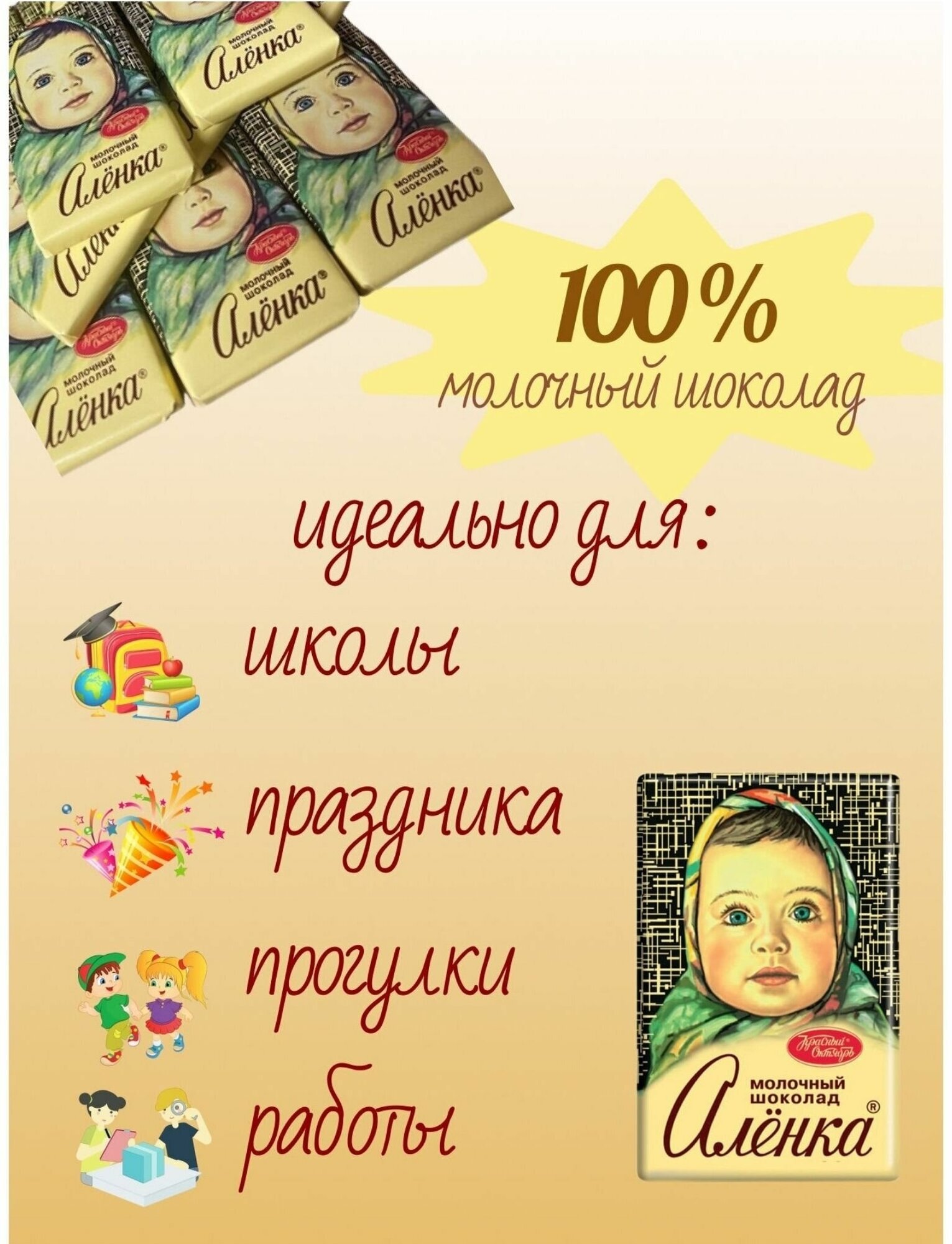 Шоколад Алёнка молочный мини-плитки порционный 15 г 42 уп. Бабаевский