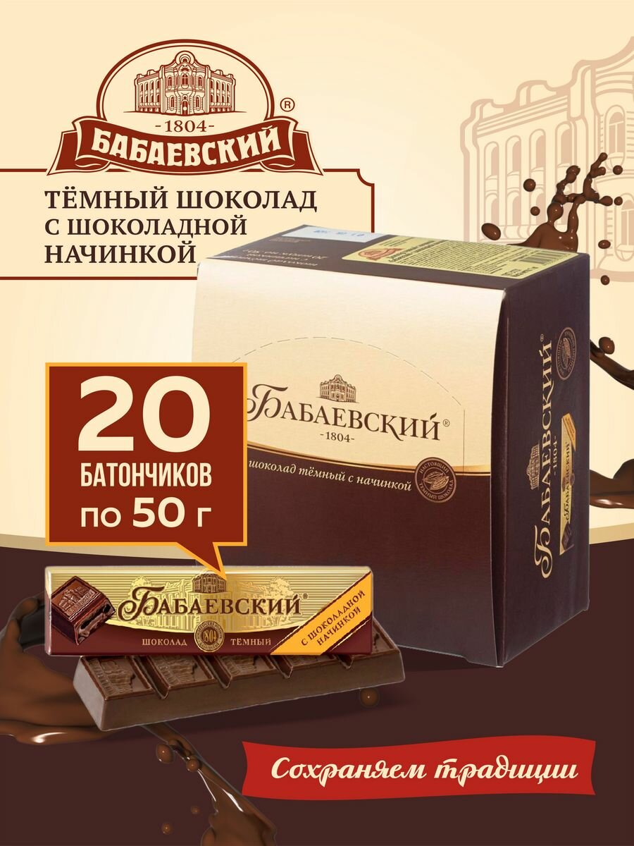Любимый батончик с шоколадной начинкой для тех, кому никогда не бывает много шоколада! Советуем в пару к капучино или латте. Гордость бренда "Бабаевский" темный шоколад, созданный с использованием отборных какао-бобов и какао-масла высшего качества.