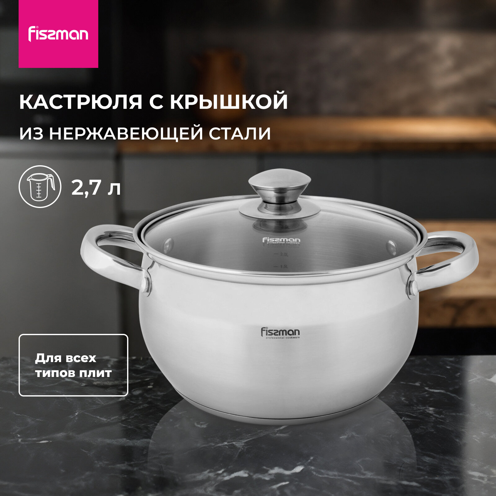 Компания FISSMAN ценит своих покупателей и относится к качеству своей продукции с особым вниманием. Посуда серии PRIME сделана из самой безопасной высококачественной нержавеющей стали марки 18/10 (INOX304), обладает жаростойкостью и коррозийной прочностью, очень легка в уходе. Многослойное капсульное дно обеспечивает равномерный нагрев и распределение тепла благодаря алюминиевой прослойке, раскрывая вкусовые качества блюда и сохраняя все полезные свойства продуктов, а индукционный слой делает посуду универсальной для всех типов плит. • Стальной корпус 18/10 (INOX304) (высококачественная нержавеющая сталь) • Многослойное индукционное дно (для всех типов плит, высокая теплопроводность) • Мерная шкала (для контроля количества жидкости) • Прозрачная ударопрочная стеклянная крышка с паровыпуском позволяет наблюдать за готовностью пищи, не открывая посуду, тем самым, исключая попадания брызг на кожу и одежду • Прочные и удобные для захвата стальные ручки на заклепках • Изогнутая форма - увеличение объема с сохранением небольшого диаметра и удобной высоты • Безопасно для здоровья и окружающей средыВыбирая фирменную стальную посуду PRIME FISSMAN, Вы можете быть уверены в лучшем стандарте качества и удобстве использования, а стильный оригинальный дизайн расставит акценты и станет украшением на любой кухне.