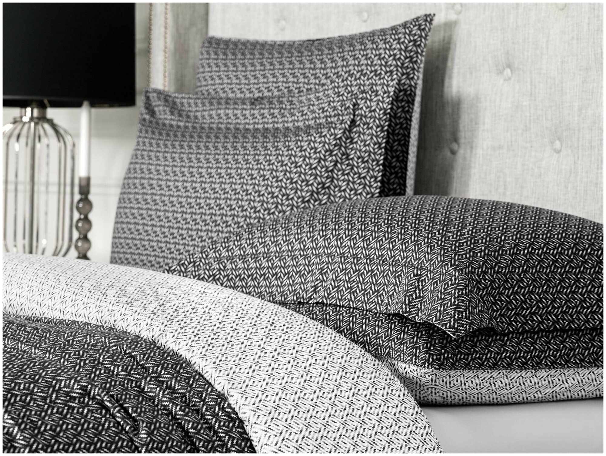 Постельное белье «Кеннет» изготовлено из хлопка-сатина высокой плотности, приятной на ощупь ткани с легким шелковистым блеском.Мягкий хлопок-сатин очень гигиеничен: он хорошо впитывает влагу и пропускает воздух. Постельное белье прошло специальную обработку – двойную мерсеризацию – для придания ему дополнительной мягкости. Эта модель создана из лучших сортов длинноволокнистого хлопка. Высокая плотность материала увеличивает срок службы комплекта. Такое постельное белье выдерживает значительное количество стирок, не деформируясь, не теряя яркости красок и мягкости ткани.«Кеннет» – это строгий мужской дизайн и стильная контрастность: в комплекте использованы всего два цвета – насыщенный антрацитовый и белый. Мелкий геометрический принт на ткани белья напоминает оригинальное полотно, сплетенное из лент. Комплект двусторонний: монохромный орнамент зеркально отражается на обратной стороне пододеяльника и наволочек. Уход — деликатная стирка при температуре 40°С с применением моющих средств для цветного белья — перед первым использованием рекомендуется постирать — не отбеливать — допускается барабанная сушка (деликатный режим)