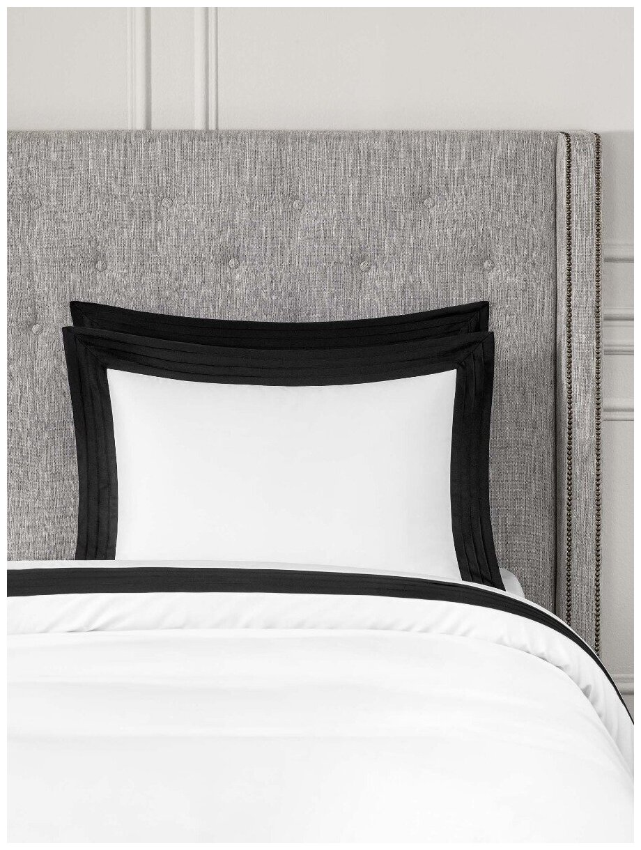 Контрастный белый с черной отделкой комплект «Эдем» – выбор для стильных и неординарных интерьеров. Такое постельное белье привлекает внимание и станет дизайн-акцентом в спальне. Широкий декоративный бордюр со сложной отделочной строчкой украшает наволочки и верхнюю часть пододеяльника. Черные бордюры создают эффектный контраст в духе Казимира Малевича.