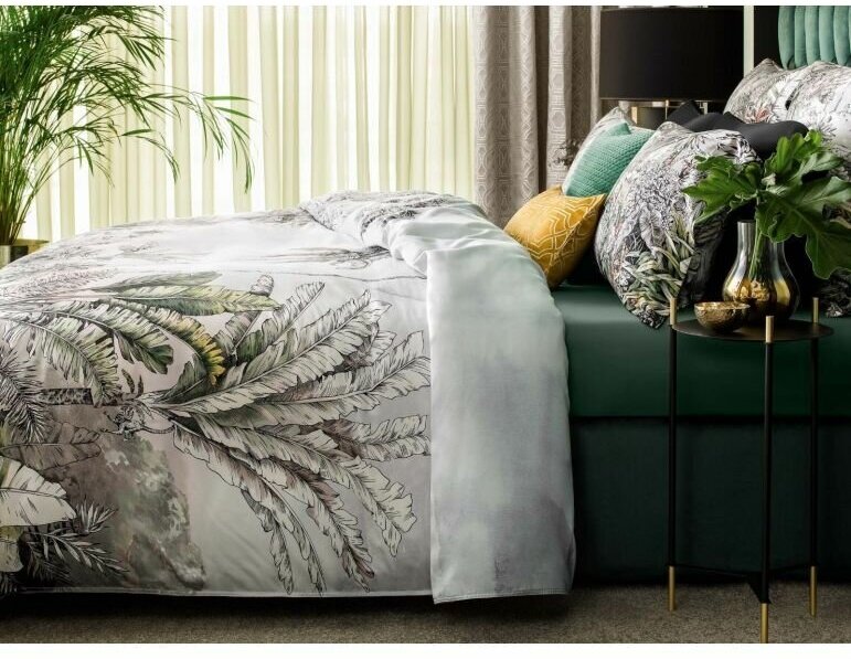 Орнамент «Ильбамы» – это флора и фауна тропического леса: крупные листья пальм и лиан, пышные заросли папоротников и хищные звери, скрывающиеся в листве. Растительный принт выполнен в стилистике ботанических гравюр, популярных в XIXвеке и создаваемых путешественниками-исследователями новых земель и видов растений. Монохромность гравюры смягчает буйство растительности орнамента, дизайн выглядит не только эффектно, но и стильно.