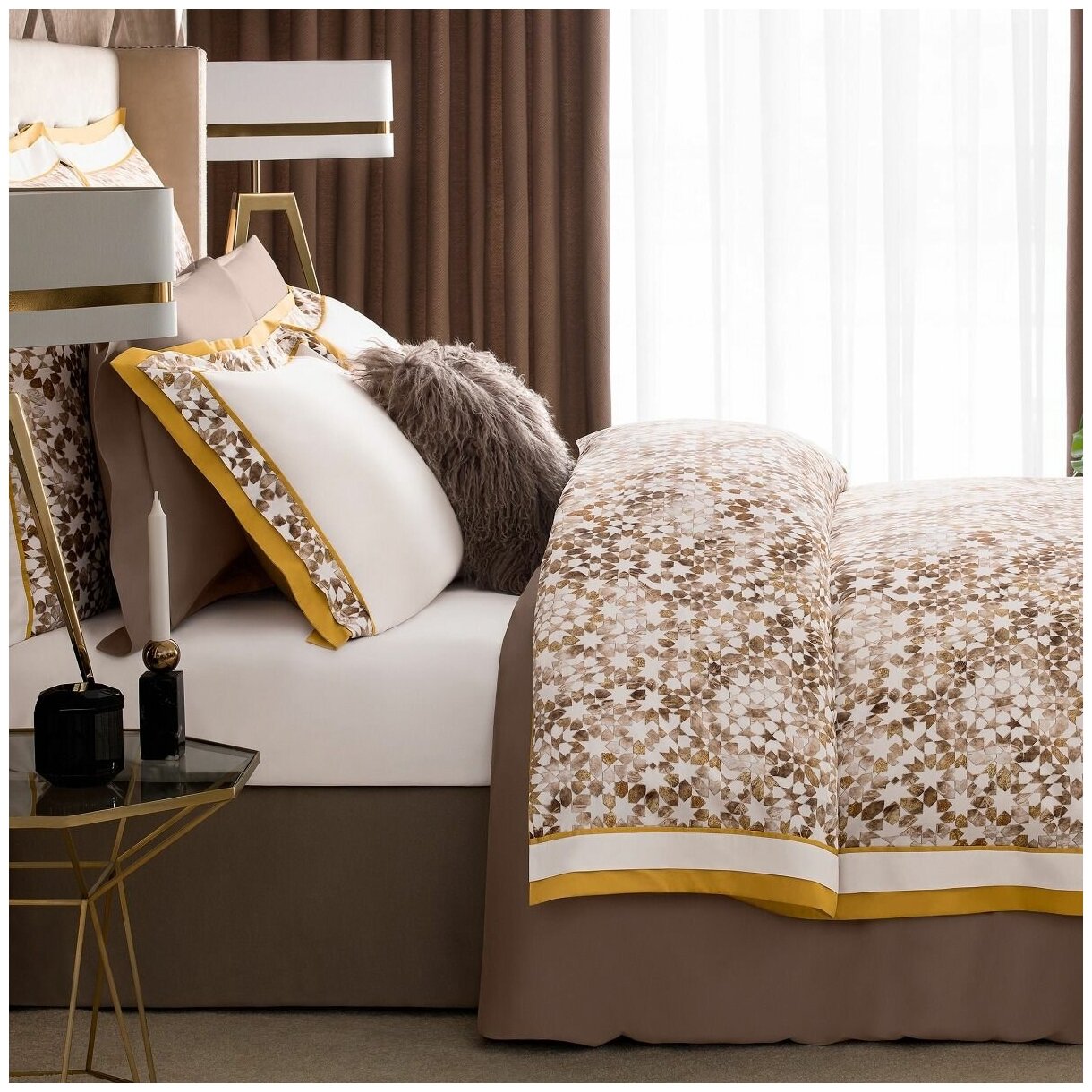 Яркое постельное белье «Нурим» создано из шелковистого хлопка-сатина повышенной плотности.Ткань с сатиновым плетением нитей гладкая, мягкая и нежная на ощупь, обладает легким блеском. Белье из хлопка-сатина не деформируется и не дает усадки, его краски не поблекнут после многочисленных стирок. Постельное белье прошло двойную мерсеризацию, специальную обработку для придания ему еще большей мягкости.Для этого комплекта использованы лучшие сорта длинноволокнистого хлопка. Из длинных хлопковых волокон получается прочный материал, который хорошо впитывает влагу.Сложные переплетения линий орнамента на ткани «Нурим» и его теплые золотистые оттенки напоминают стилизованный восточный узор гирих. Он выражает совершенство геометрической красоты и является символом божественного начала. Теплая палитра – это цвета горячего песка и жаркого солнца. Наволочки с обратной стороны однотонные – яркого солнечно-горчичного цвета. Пододеяльник и наволочки украшены двойными декоративными бордюрами. Этот комплект выглядит нарядно и эффектно, в нем нашла отражение восточная яркость красок, символизм и философский смысл исламских орнаментов. Уход — деликатная стирка при температуре 40°С с применением моющих средств для цветного белья — перед первым использованием рекомендуется постирать — не отбеливать — допускается барабанная сушка (деликатный режим)