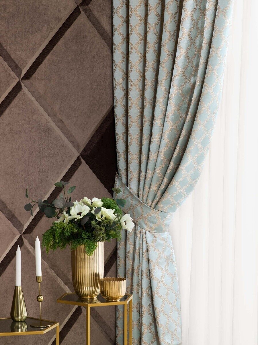 Детали: Жаккардовые шторы с классическим орнаментом «венецианская решётка».