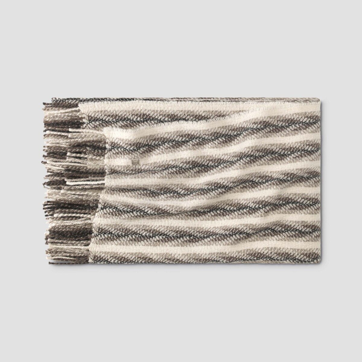 Модель «Этторе» – это природная палитра приятных коричневых оттенков и достоинства удивительно теплой шерсти альпака. В этом изделии овечья шерсть комбинируется с редким шелковистым руном перуанской ламы, альпака, которая обладает рядом уникальных свойств: комфортностью, мягкостью и уникальной теплопроводностью, высокой прочностью и воздухопроницаемостью, а также красивым блеском. На изделиях из шерсти альпака не образуются катышки, такие модели долго прослужат, не теряя первоначальной красоты. Широкая палитра натуральных оттенков этой пряжи – черный, коричневый, бежевый, серый – позволяет создавать прекрасные изделия натуральных тонов, не используя искусственные красители. В пледе «Этторе» нашла отражение вся гамма оттенков коричневого: розоватый экрю, светло-бежевый, кофейный, шоколадно-коричневый.