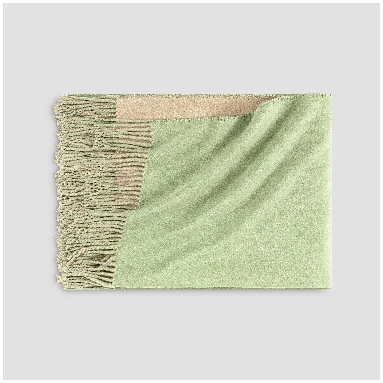 Плед Togas Маринетти 140 х 180 см шелк + хлопок бежевый + зеленый (размер: 1.5-спальный)