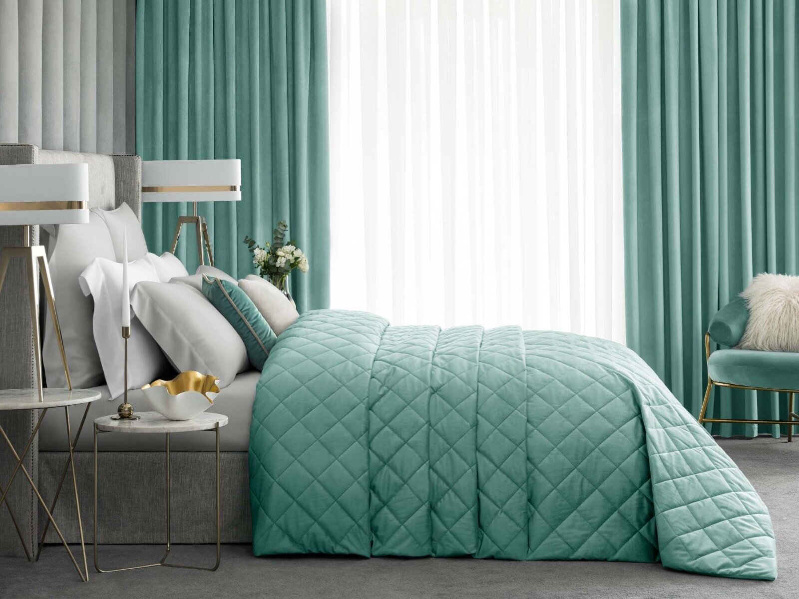 В ткани бархатных штор «Алессио» практичный и прочный полиэстер сочетается с шелковистым и мягкими волокнами SENSOTEX®. Текстиль из полиэфирных волокон не выгорает на солнце, прост в уходе. Материал штор не деформируется и практически не мнется, шторы ниспадают красивыми складками. Шелковистые волокна SENSOTEX®, добавленные в ткань, делают ее более мягкой, пластичной и приятной на ощупь. Однотонный бархат привлекает внимание красивыми переливами цвета на полотне. Нежно-бирюзовый оттенок «Алессио» никого не отставит равнодушным. Бирюзовый цвет напоминает водную стихию, а с точки зрения психологии дает ощущение духовной чистоты, умиротворения и безмятежности. Такой текстиль будет прекрасно смотреться в спальне.