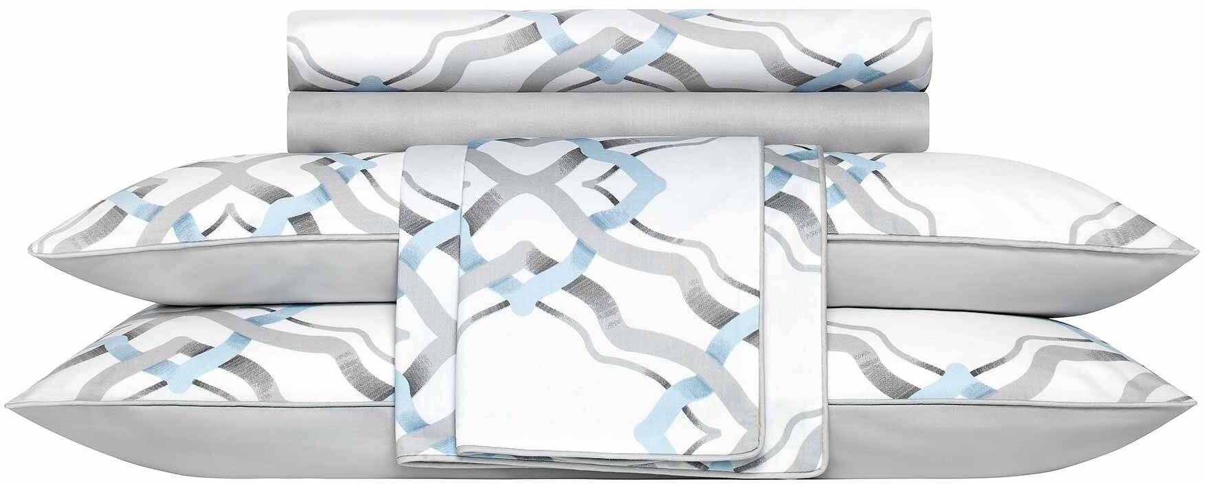 Классический комплект постельного белья «Френсис» выполнен в холодных серо-голубых тонах. Комбинация этих неярких, рафинированных, изысканных оттенков – одна из самых гармоничных и прекрасно смотрится в интерьере спальни. Орнамент комплекта – стилизованная венецианская решетка, выполненная в холодных оттенках голубого неба и серебристого утреннего тумана. Этот знаменитый узор до сих пор украшает творения средневековых венецианских мастеров, ажурные окна прекрасных итальянских палаццо. Постельное белье изготовлено из элитной ткани – плотного Роял сатина. Это экологичный, прочный и очень красивый материал. Его поверхность подвергается специальной обработке, после которой лицевая сторона постельного белья приобретает нежную бархатистость, напоминающую кожицу спелого персика.