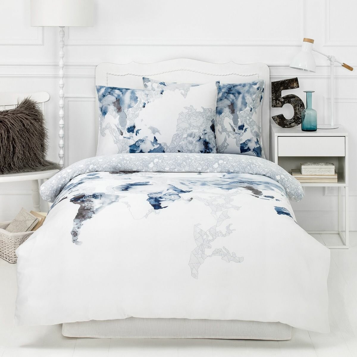 Комплект «Магеллан» изготовлен из приятного на ощупь 100% бамбукового волокна, которое идеально подходит для людей с чувствительной кожей. Это прочная, воздухопроницаемая и гигроскопичная ткань, она в 1,5 раза быстрее впитывает и испаряет влагу по сравнению с хлопком. Постельное белье из бамбука создает оптимальный микроклимат для сна, в жаркую погоду шелковистое прикосновение подарит легкую прохладу. Ткань полностью экологична: так как бамбук неприхотлив и быстро растет, нет необходимости в какой-либо химической обработке растений. Уникальное свойство бамбука – антибактериальность, она сохраняется и в обработанных волокнах растения. Молодежный принт этого комплекта выполнен в акварельной технике. Это морские волны и пена прибоя, водная стихия, которую лучше всего передает акварель. Цвета постельного белья – морская палитра, переходы от глубокого темно-синего до голубых тонов и жемчужного оттенка морской пены. Обратная сторона пододеяльника оформлена серебристо-пепельным геометрическим орнаментом. Неяркая геометрия разбавляет морскую синеву на ткани белья.
