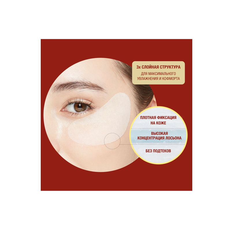 Увлажняют кожу, разглаживают морщины, «стирают» темные круги под глазами, 64 тканевых патча для зоны под глазами и вокруг губ.
