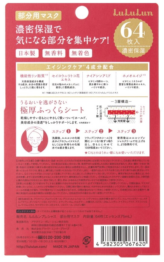 Тканевые патчи LuLuLun Precious Facial Parts Mask для ухода за кожей вокруг глаз