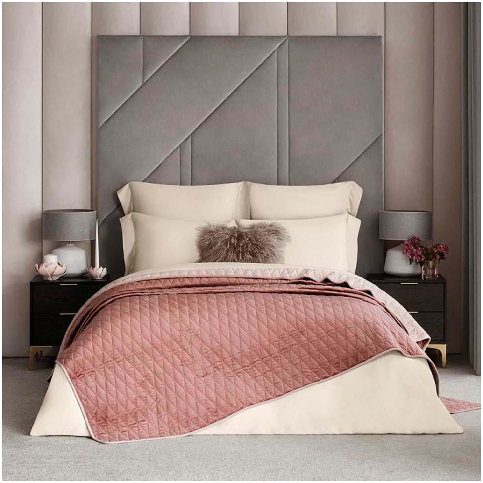 В ткани двустороннего бархатного покрывала «Моретто» мягкие волокна инновационного материала SENSOTEX® сочетаются с прочным и практичным полиэстером.Шелковистые волокна SENSOTEX®, полученные из переработанных побегов австралийского эвкалипта, делают материал мягким, нежным, тактильно приятным. Полиэфирные волокна в ткани добавляют покрывалу прочности и продлевают срок его службы, а также препятствуют деформации изделия. Такая ткань не боится солнечных лучей и не теряет яркости красок спустя долгое время.«Моретто» – однотонное стеганое бархатное покрывало, нежное на ощупь, с легким блеском. Геометрическая ромбовидная стежка дополнительно подчеркивает красоту ткани. Эта модель двусторонняя, можно менять оттенок по своему настроению, создавая более светлый интерьерный образ или наполняя спальню насыщенным кораллово-розовым цветом. Удивительно нежные оттенки розового, дополненные мягкой красотой бархата, делают «Моретто» женственным и изящным. Такое покрывало станет украшением женской спальни.
