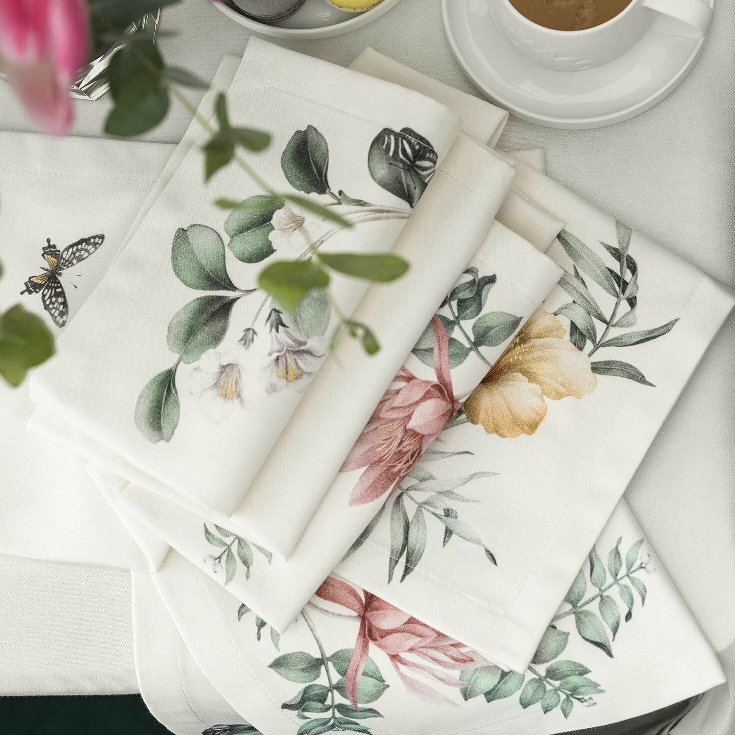 Квадратная салфетка «Альфабия» изготовлена из плотной хлопковой ткани.В ее основе лучшие сорта натурального хлопка. Хлопковый текстиль экологичен и гигиеничен, изделия прекрасно впитывают влагу и быстро высыхают. Плотная ткань не деформируется, салфетки хорошо сохраняют форму.Красивый флоральный дизайн «Альфабии» напоминает ботанические иллюстрации, в которых тонко выписанные лепестки и прожилки на листьях кажутся объемными, живыми. Изящный золотисто-желтый цветок декорирует салфетку с одной стороны, с другой изображена маленькая бабочка, летящая навстречу цветочным лепесткам и нектару. В коллекции «Альфабия» есть три вида салфеток, каждая из них – это новый цветок и разные бабочки. Выбирайте комбинации, которые вам нравятся, и создавайте собственный летний дизайн интерьера столовой.