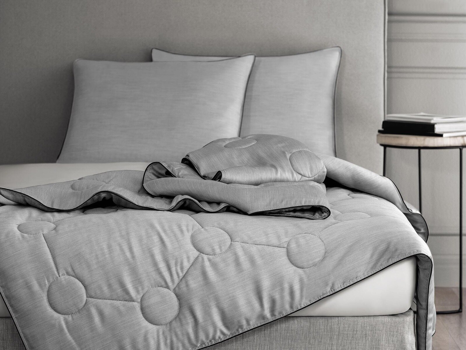 Ткань чехла этой модели – материал последнего поколения, сочетание шелковистого модала с вискозой и графеном. Это мягкий, нежный, приятный на ощупь материал, при этом очень прочный из-за волокон графена. Стильный серебристо-серый оттенок чехла подушки «Антрацит» подчеркивает ее название и выглядит современно.