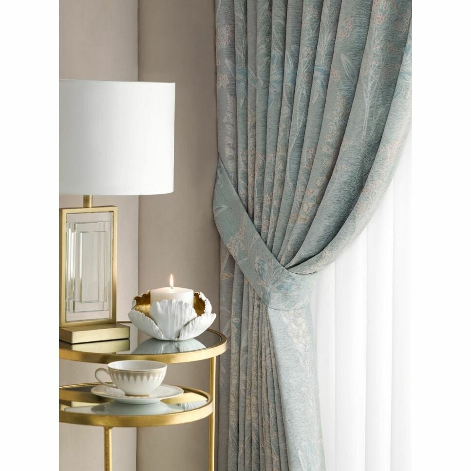 Комбинированная ткань фактурных штор «Арсе» – практичный полиэстер с добавлением шелковистой, мягкой вискозы.Текстиль из полиэфирных волокон износостойкий и практичный, не выгорает на солнце, не дает усадки при стирке. Изделия из полиэстера не деформируются, пластичны, прекрасно драпируются мягкими складками, обрамляя оконный проем. Шенилловые нити в составе ткани делают «Арсе» более мягкими, слегка бархатистыми на ощупь.Эти жаккардовые шторы украшены эффектным флоральным орнаментом. Крупные садовые цветы, созданные в гобеленовой технике, имеют легкий рельеф и красиво выделяются на фоне ткани оттенка аквамарина. Выразительный рисунок, вытканный с помощью жаккардового плетения, подчеркивает мягкость шенилловых нитей фона штор и их нежный светло-аквамариновый оттенок.
