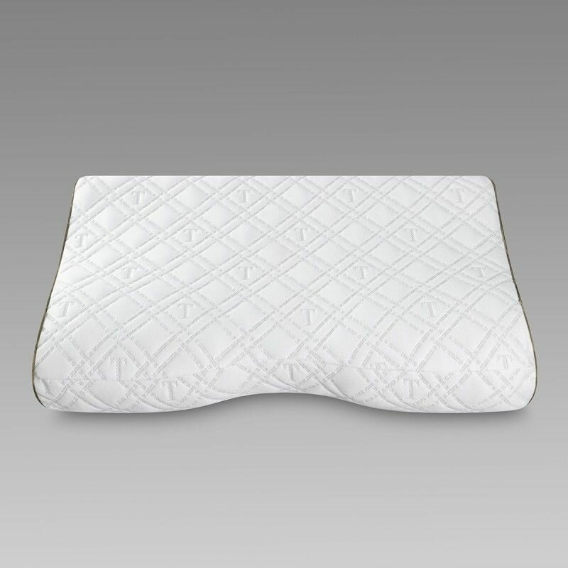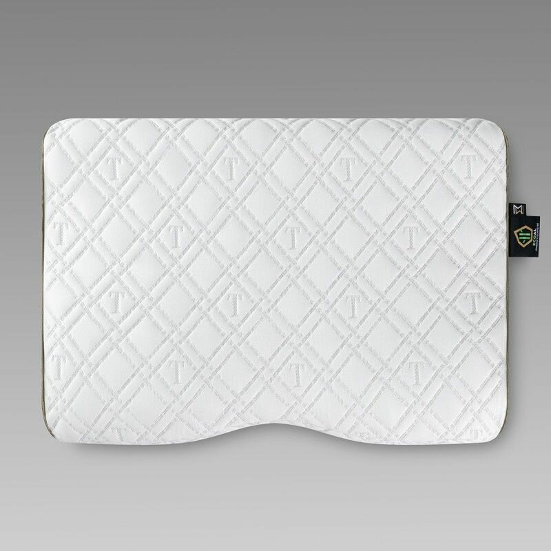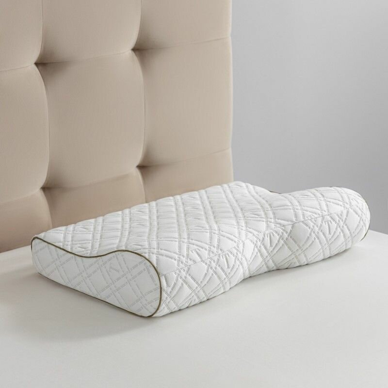 Подушка анатомической формы в съемном велюровом чехле из натурального хлопка. Наполнитель – эластичная пена с эффектом памяти и бамбуковым углем, который обладает антибактериальными свойствами.