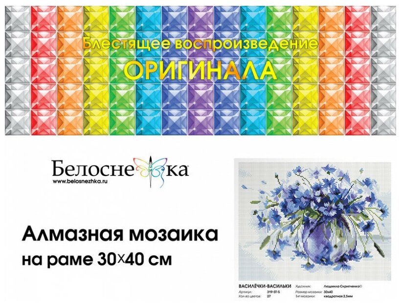 Сервис сравнения цен СкидкаГИД предлагает сравнить цены на товар «Картина мозаикой Белоснежка Василёчки-васильки 30x40 см 319-ST-S»
