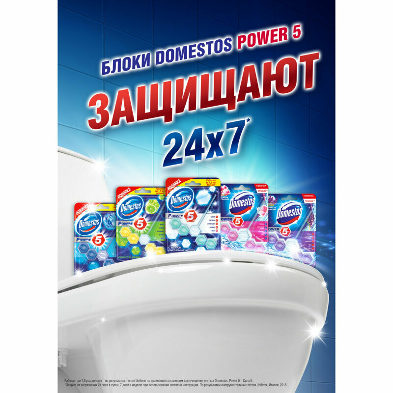 Domestos блок для очищения унитаза Domestos power 5 ледяная магнолия 55 г