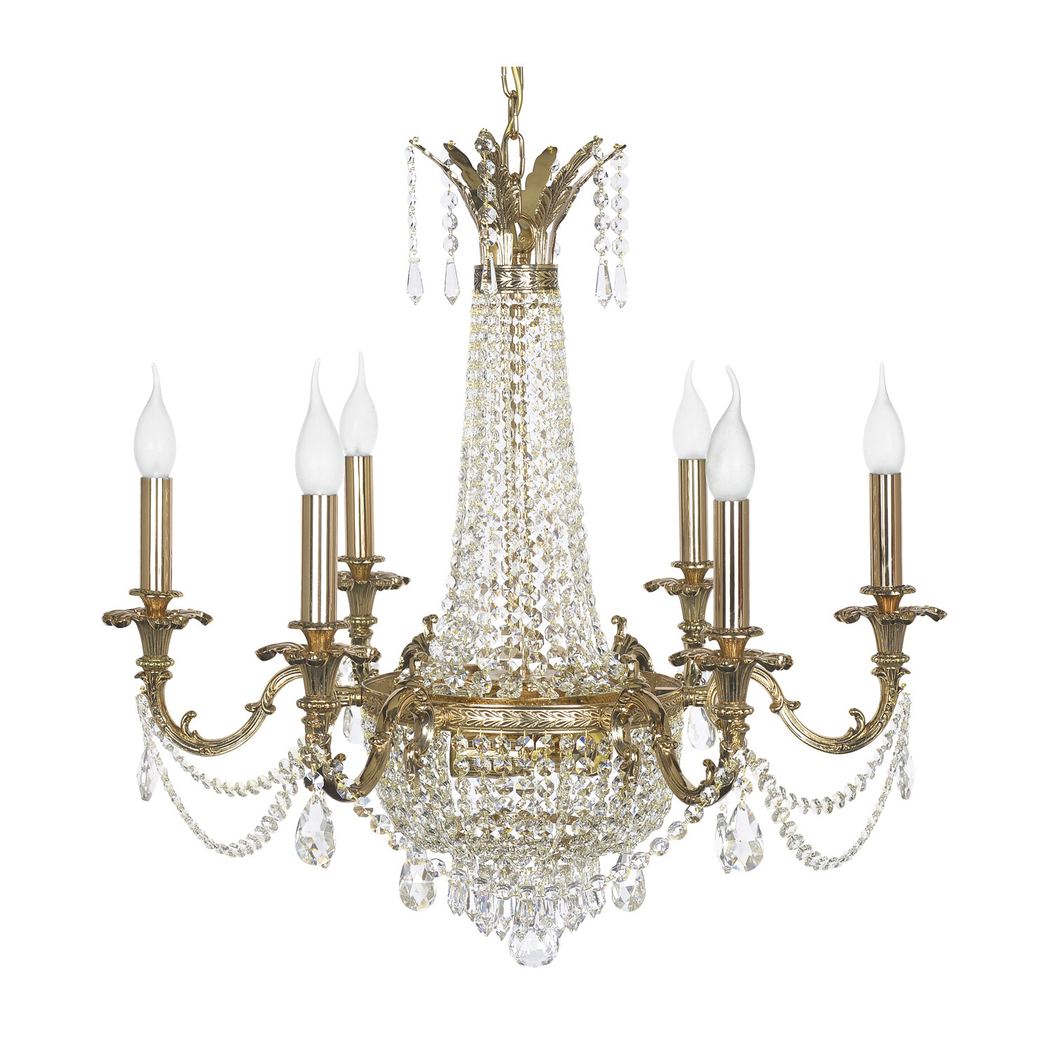 Люстра Ancona E 1.6.6.200 GB из серии «Ancona Gold» от производителя Dio D`arte (Италия). Дизайн-стиль барокко. Отлично подойдет для такого типа помещений, как гостиная. Цвет товара золотистый. Используемые материалы: металл. С учетом технических характеристик мощности хватит для освещения 13.3 м2. Способ крепления: крюк. Направление плафонов вверх. Цоколь E14. Вид ламп: накаливания. Количество ламп 6 шт. Мощность одной лампы составляет 40 Вт. Общая мощность 240 Вт. Напряжение 220-240 Вольт. Уровень защищенности от влаги и пыли IP20. Расширенная гарантия на товар 2 года. Высота 800 мм. Диаметр 700 мм. Вес товара 7.5 кг. Комплектация: Люстра. Инструкция по сборке/использованию. Детали, необходимые для сборки товара.Товар упакован в картонную коробку. В случае доставки транспортными службами или маркетплейсом добавляются дополнительные элементы упаковки для защиты от повреждений при транспортировке - усиление картоном, внутренний наполнитель, стрейч-пленка.