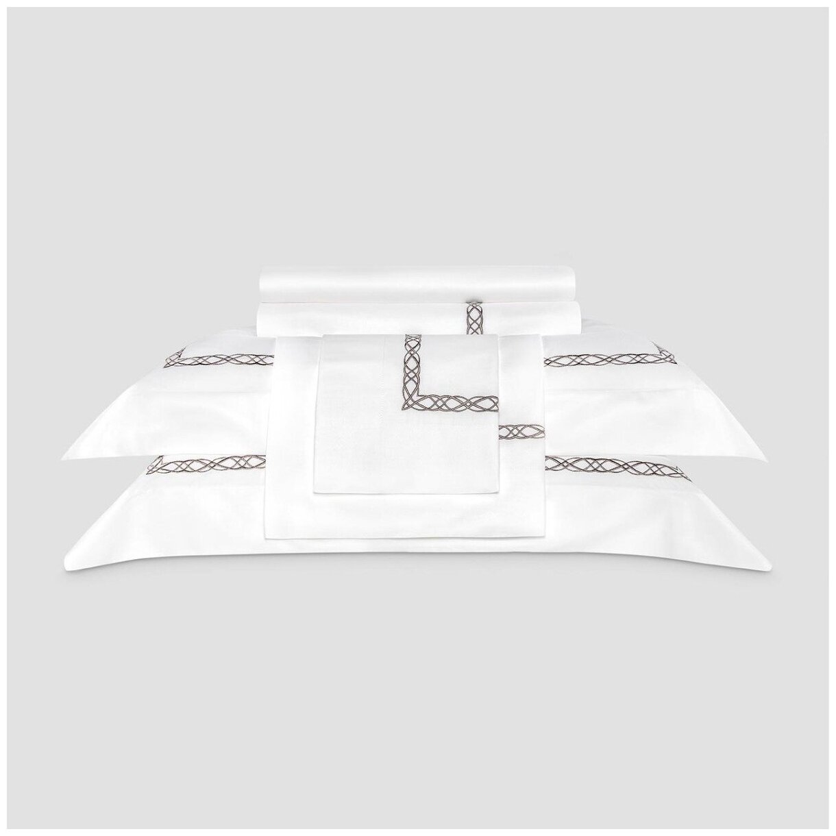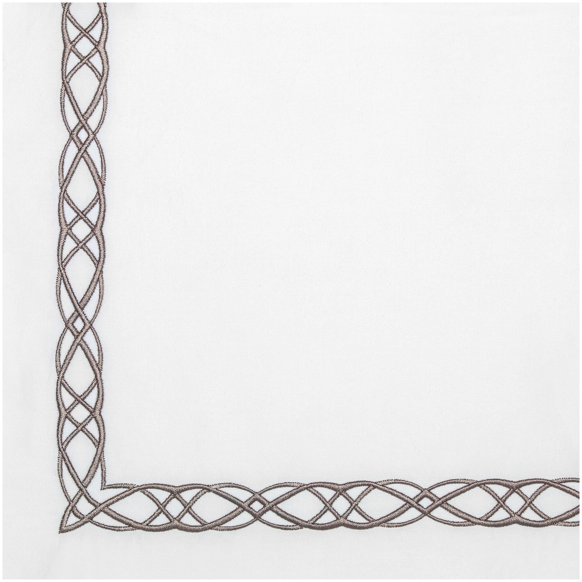 Белый цвет считается символом гармонии, счастья и чистоты. Белоснежное постельное белье «Миа», украшенное тонкой, изящной вышивкой шоколадного цвета, – это аристократизм и роскошь, стиль, достойный королевских покоев. Витиеватый вышитый рисунок обрамляет декоративные бордюры на наволочках и верхнюю часть пододеяльника, создавая ауру тонкой элегантности.