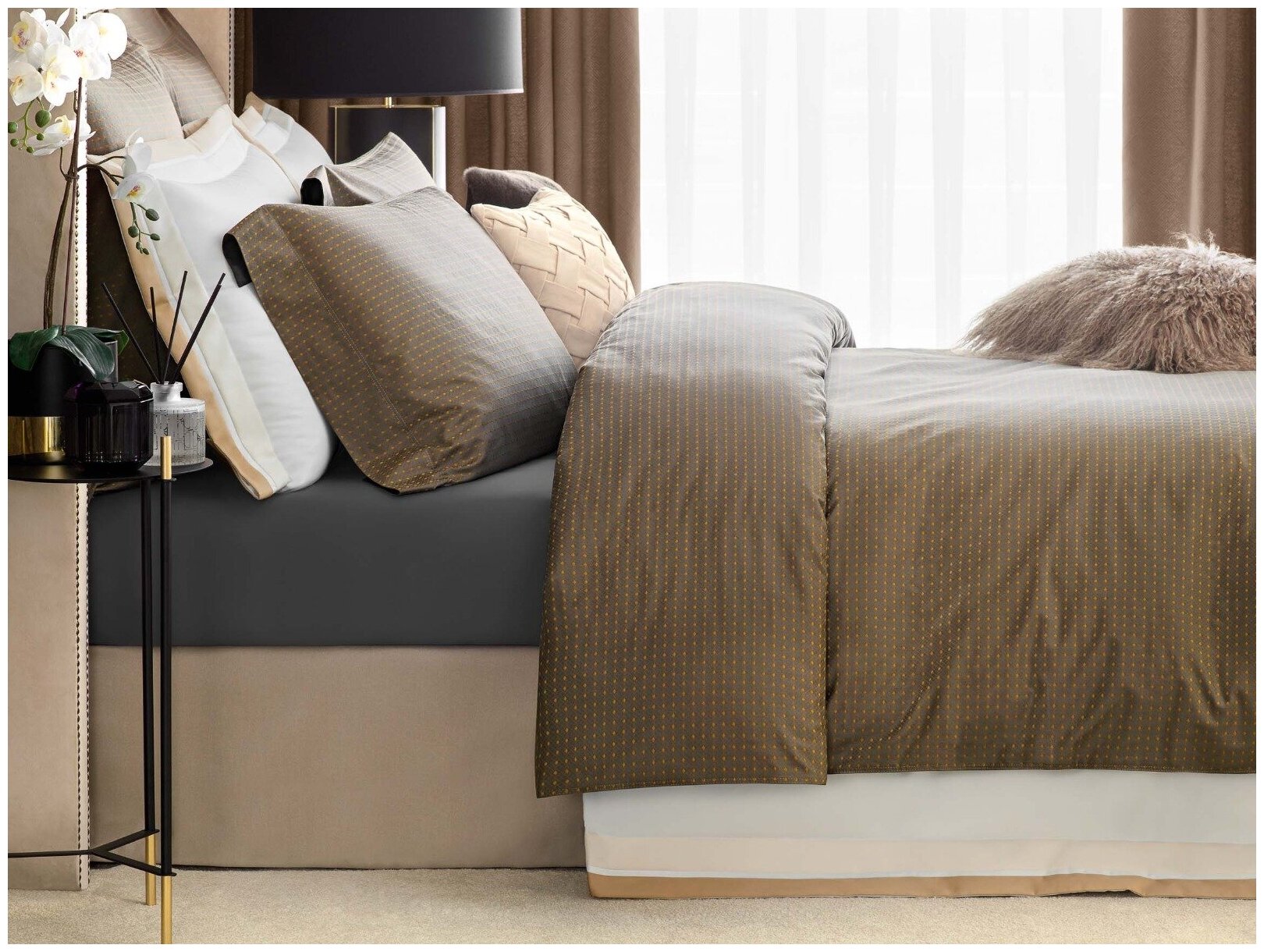 «Диксон» украшает мелкий геометрический орнамент, созданный с помощью сложного жаккардового плетения нитей. Постельное белье выглядит изысканно и обладает легким рельефом поверхности. Этот неброский комплект выполнен в классическом стиле. Приглушенная серо-коричневая палитра – хорошее решение для спальни мужчины. Простыня «Диксон» изготовлена из гладкого, шелковистого хлопка-сатина, комфортного и приятного на ощупь.
