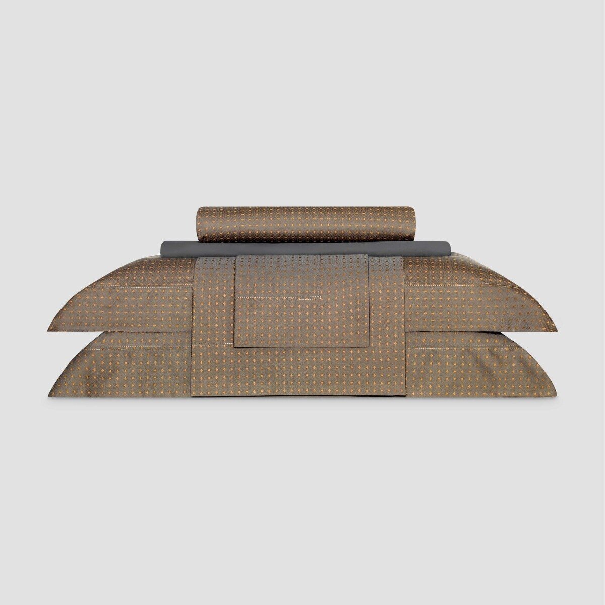 Пододеяльник «Диксон» изготовлен из гладкого, шелковистого хлопка-сатина, комфортного и приятного на ощупь. Приглушенная серо-коричневая палитра – хорошее решение для спальни мужчины.